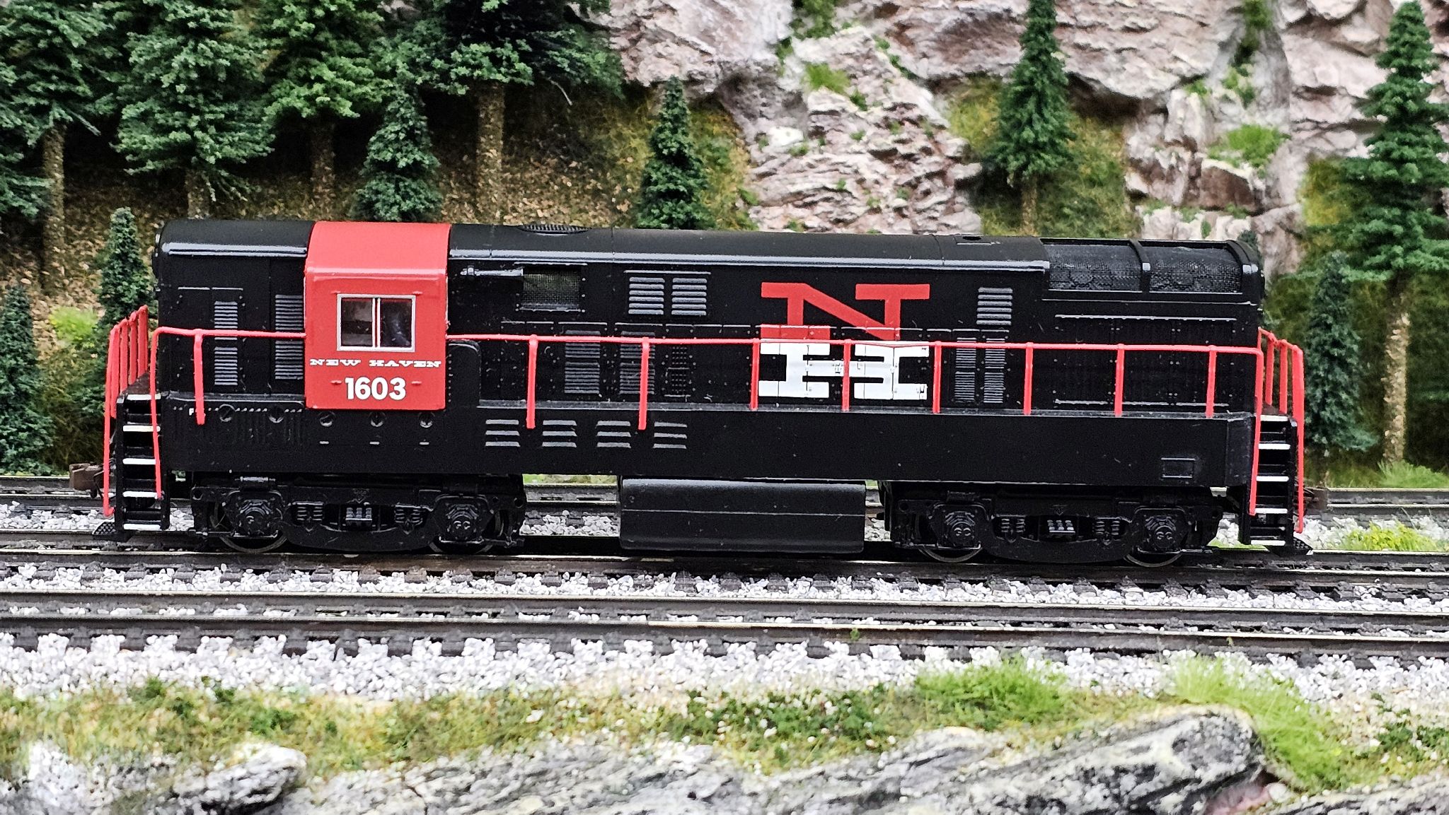 Podjetje: NEW HAVEN (NH) Oznaka lokomotive: H-16-44 Številka lokomotive: 1603 Proizvajalec: Bachmann Ohranjenost: Odlično System: DC Pogon: Elektromotor - 5 polni - z vztrajniki - SKEW bound navitje Število osi: 4