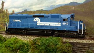 Podjetje: CONRAIL (CR) Oznaka lokomotive: SD45 Številka lokomotive: 6142 Proizvajalec: Bachmann Spectrum Ohranjenost: Perfektno System: DCC Pogon: Elektromotor - 5 polni - z vztrajniki - SKEW bound navitje Število osi: 6