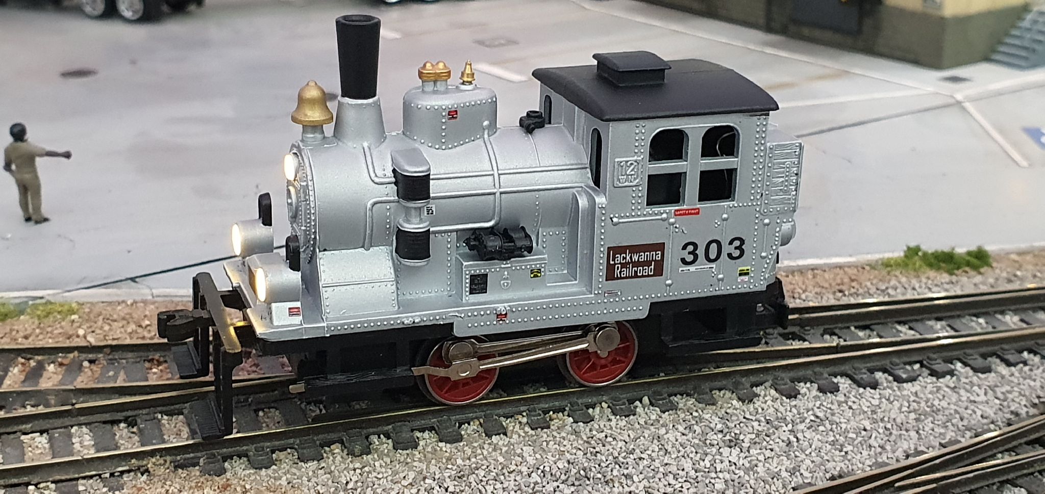 Podjetje: LACKAWANNA (LW) Oznaka lokomotive: 0-4-0 Dockside Številka lokomotive: 303 Proizvajalec: Mehano Ohranjenost: Perfektno System: DCC Pogon: Elektromotor Število osi: 2