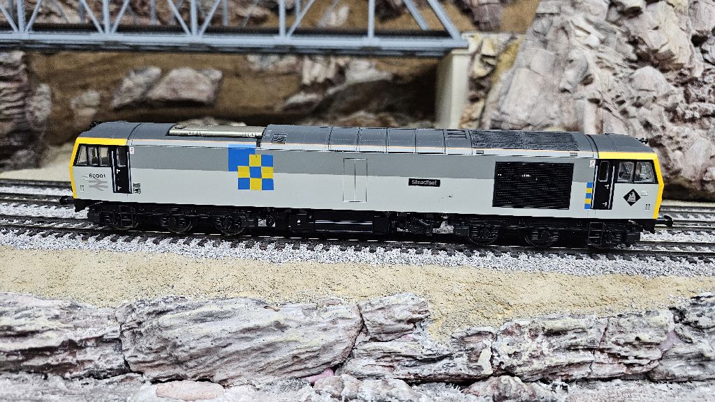 Podjetje: STEADFAST (ST) Oznaka lokomotive: CLASS 60 Številka lokomotive: 0 Proizvajalec: Hornby Ohranjenost: Perfektno System: DCC - Zvok Pogon: Elektromotor - 5 polni - z vztrajniki - SKEW bound navitje Število osi: 6