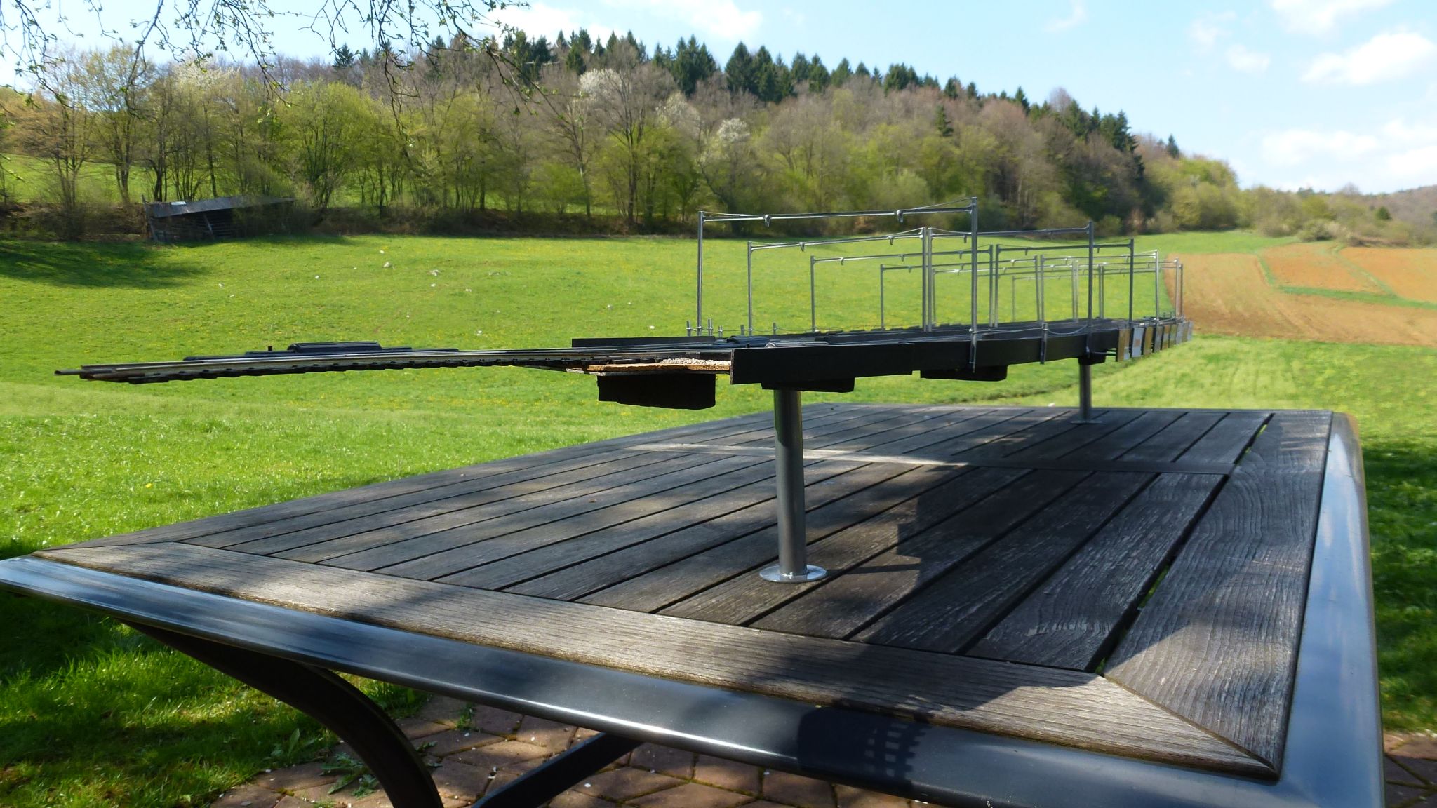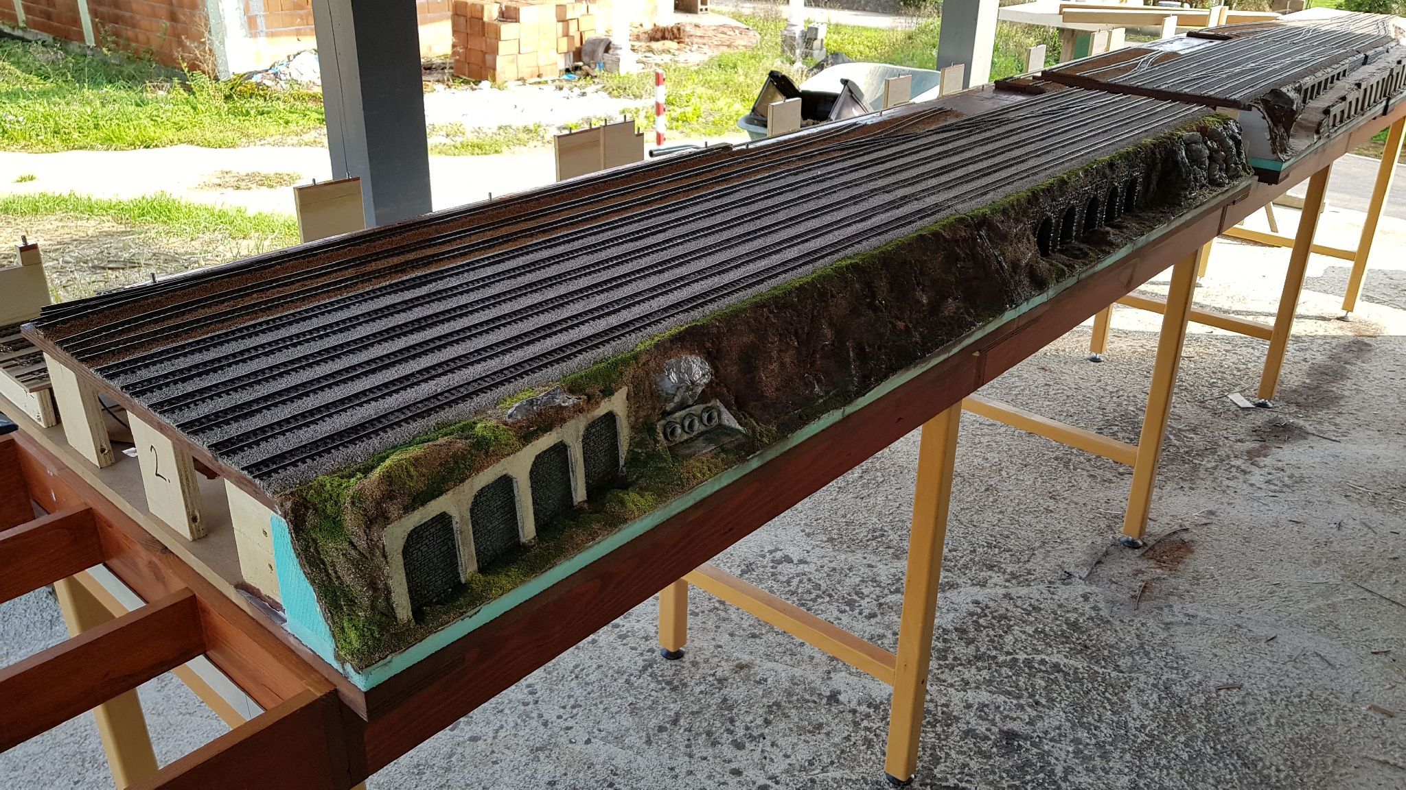 Na tej diorami so posnete slike večine lokomotiv in vagonov na moji spletnih straneh. Na tem mestu bi rad poudaril, da je to dokončan prvi del te diorame. Namreč, kasneje sem začel izdelovati še ozadje, da bi bilo možno slikanje tudi ob slabem vremenu, ter da mi ni treba nositi diorame ven, da dobim lepo ozadje za slikane objekte na tirih. Nadaljevanje izdelave je v slikah spodaj.