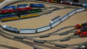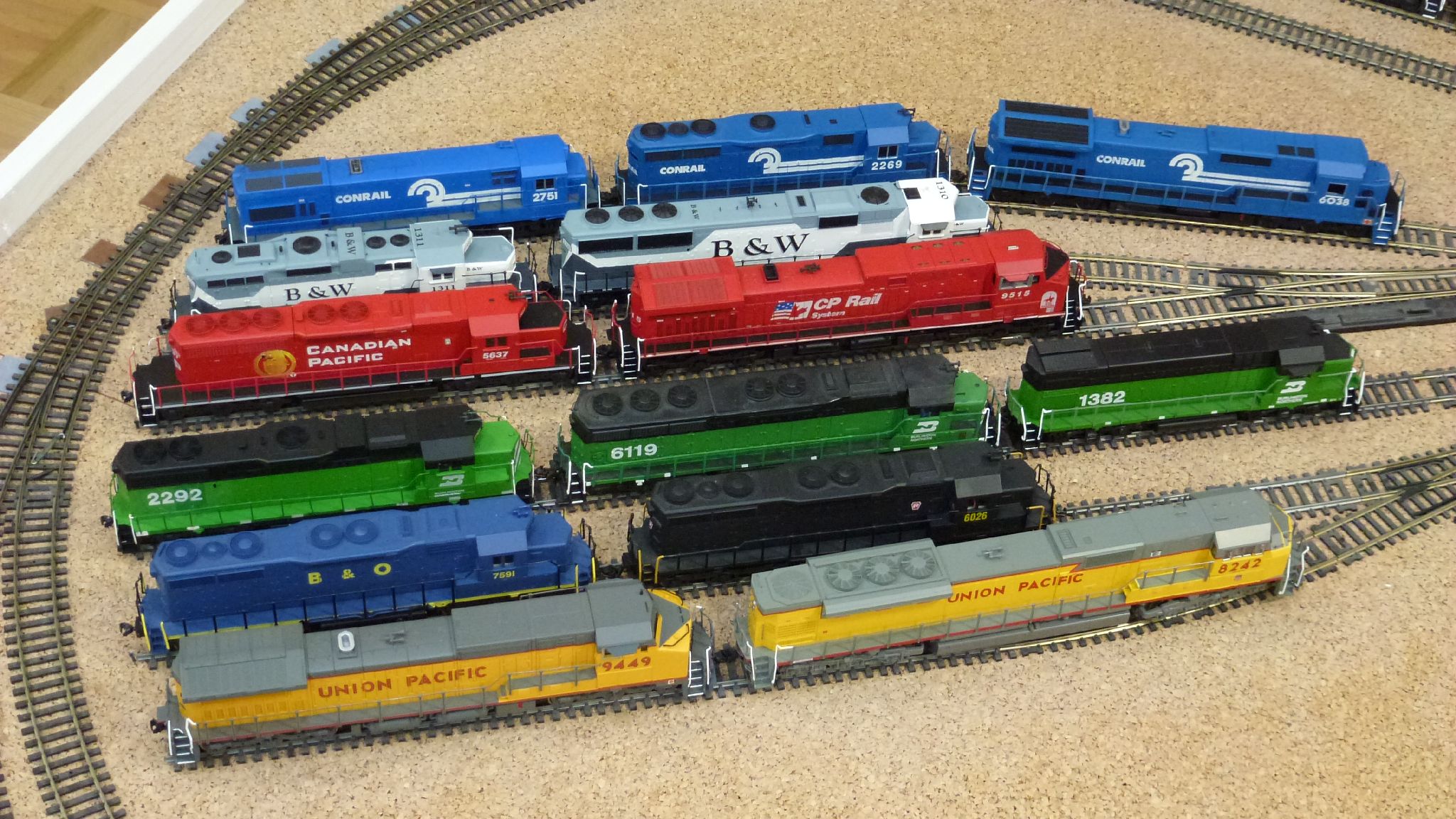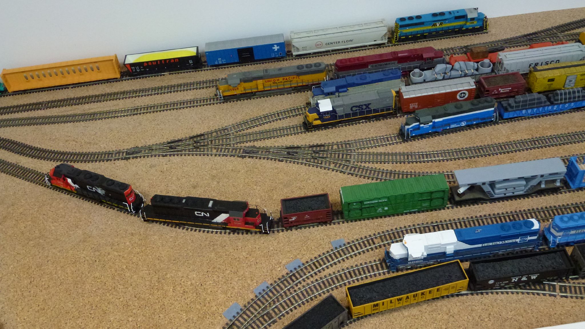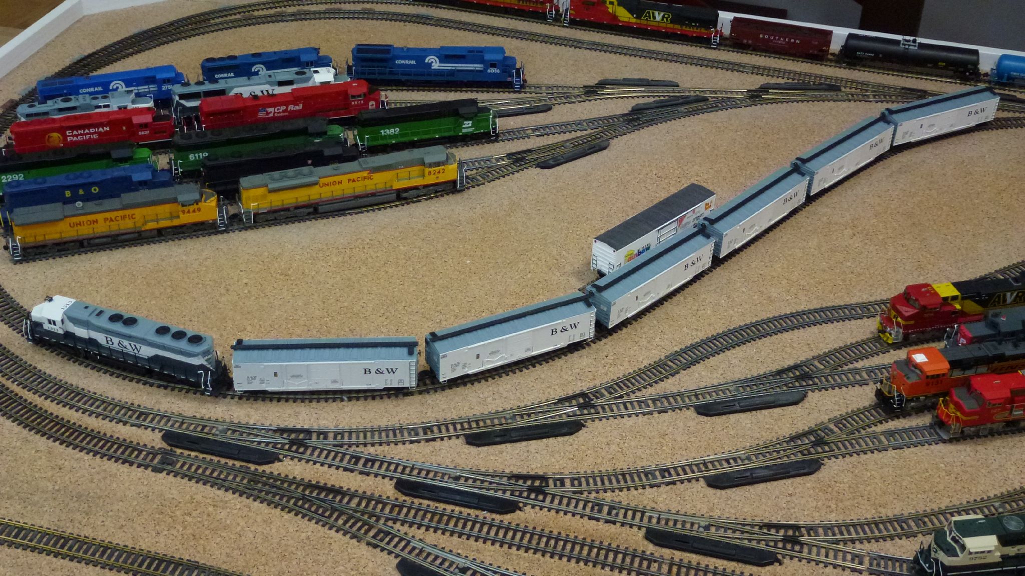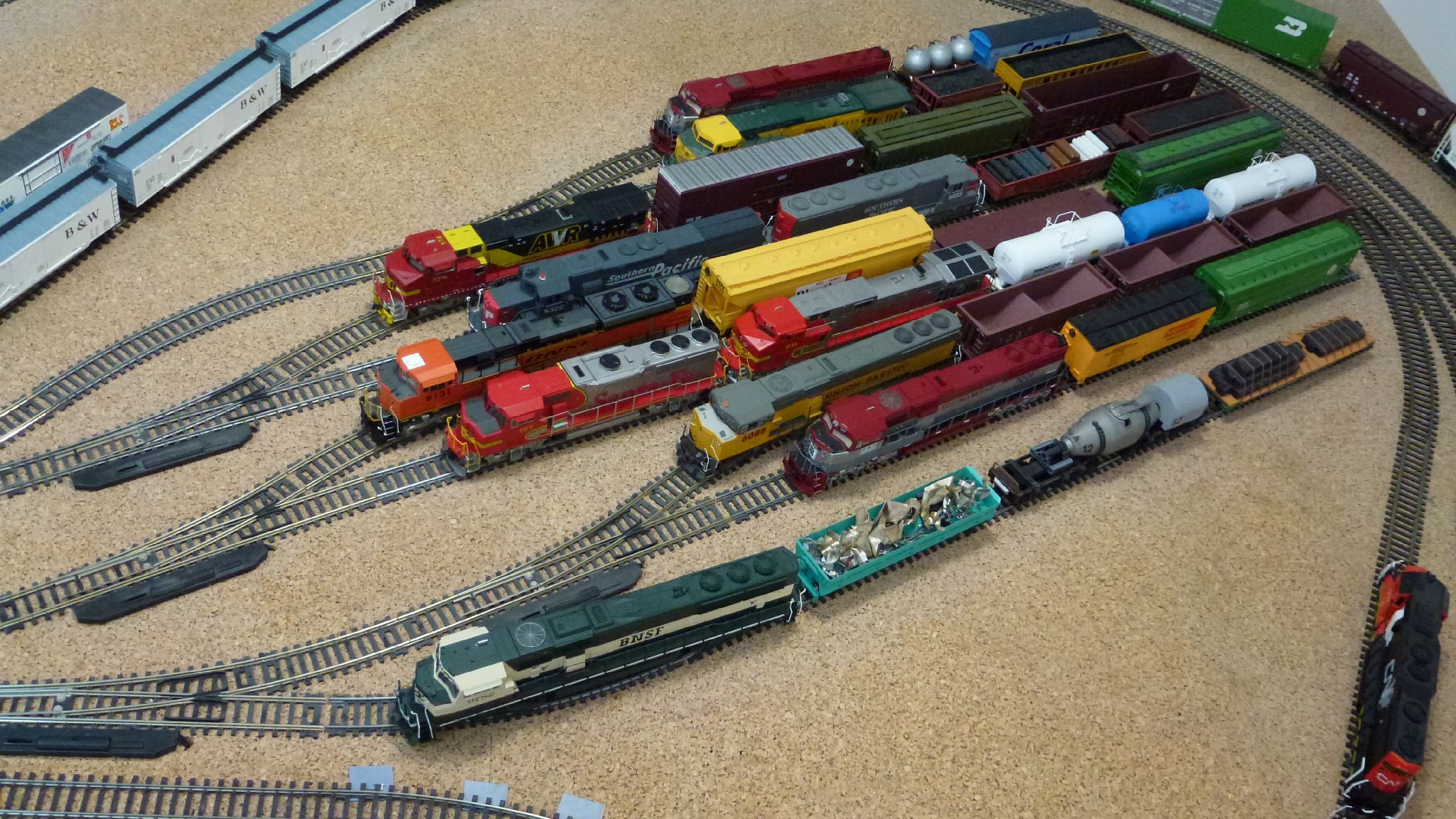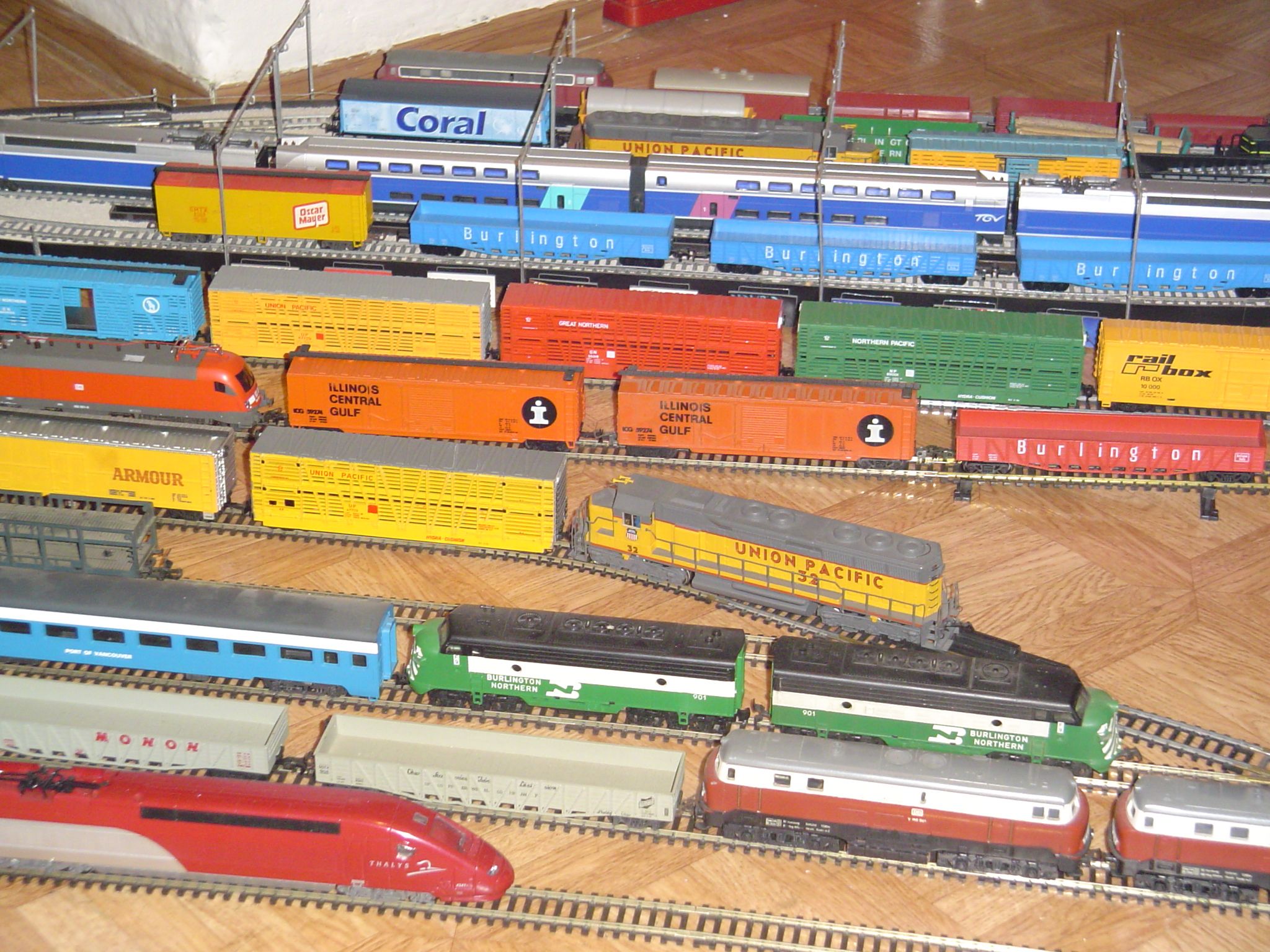 Vidite pa da sem že tedaj leta 2004 imel kar nekaj lokomotiv in vagonov. Mnoge od teh nimam več, namreč z leti se je tega toliko nabralo da sem moral nekaj prodati. Od 19ih lokomotiv ki so na teh slikah imam leta 2012 samo še tri. Od vagonov imam cca polovico, pa še te bodo počasi šli v prodajo. Za ta denar sem pa nakupil nove, boljše zadeve. Pa saj Mehano je bil kar OK, toda, ne more se primerjati z malo boljšimi firmami kot so Kato, Genesis, Spectrum, Atlas, Walthers.... Kot sami vidite sem v tem obdobju imel Ameriške kot tudi Evropske lokomotive in vagone. Kasneje ko se je modelov nabral veliko, sem se odločil samo za Ameriške tovorne vlake. Vse kar je bilo Evropskega sem z leti dal v prodajo.