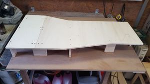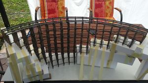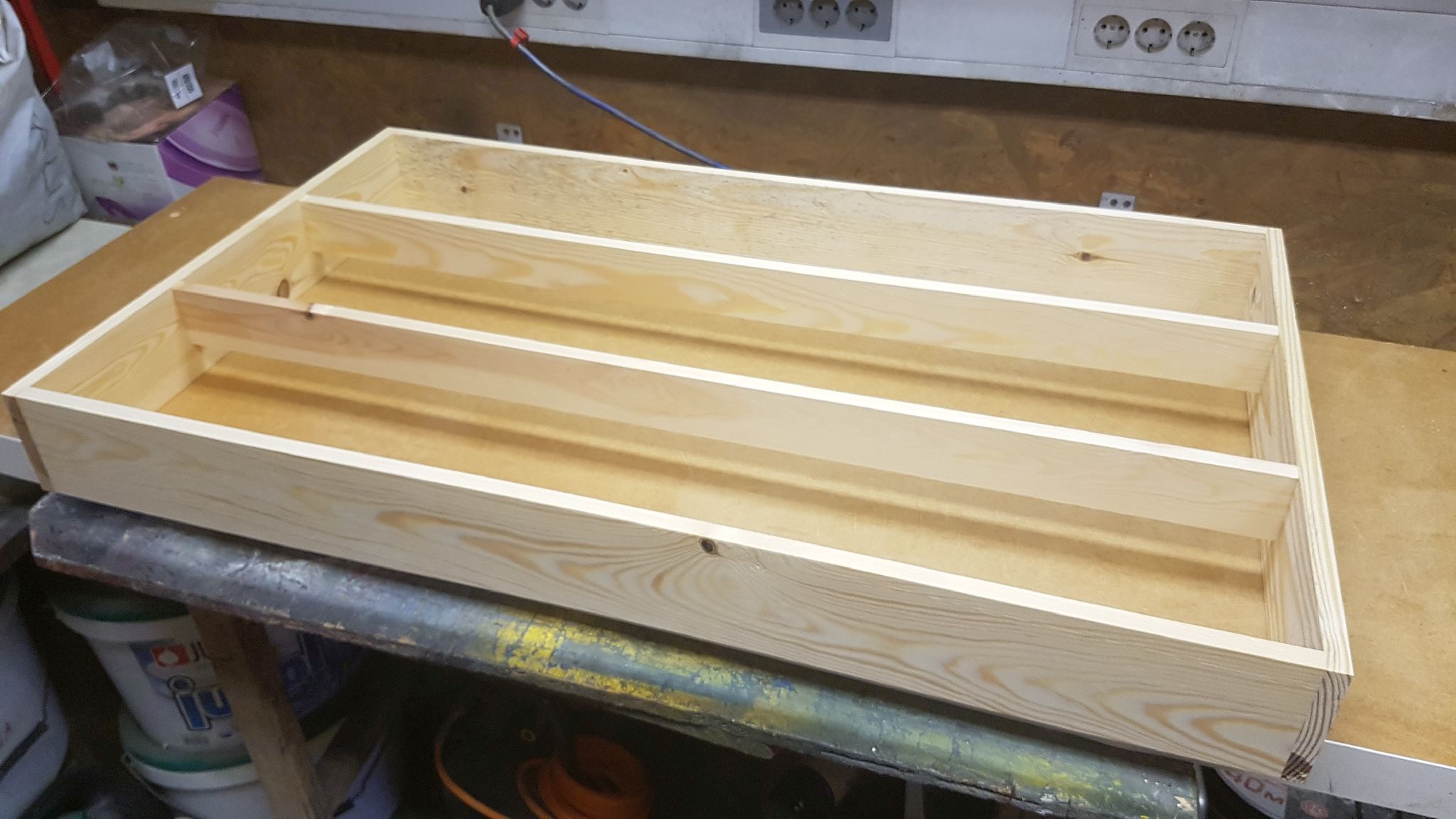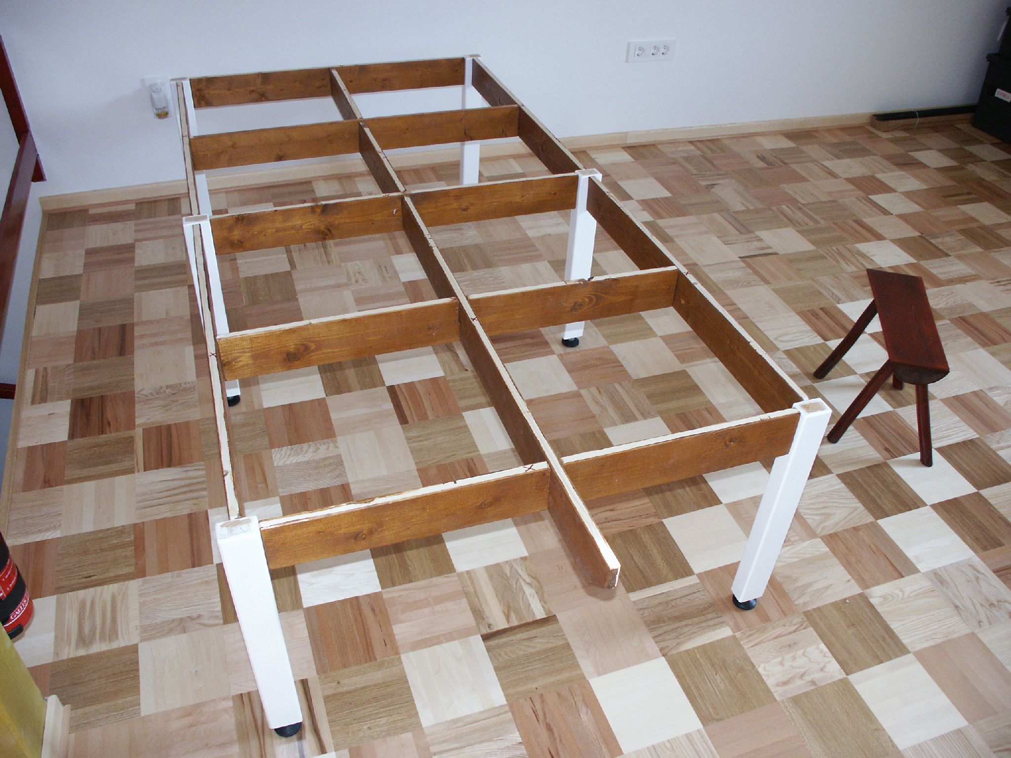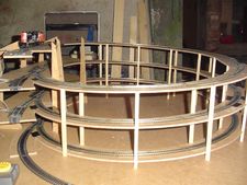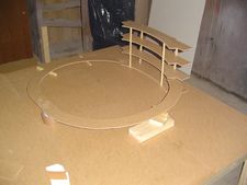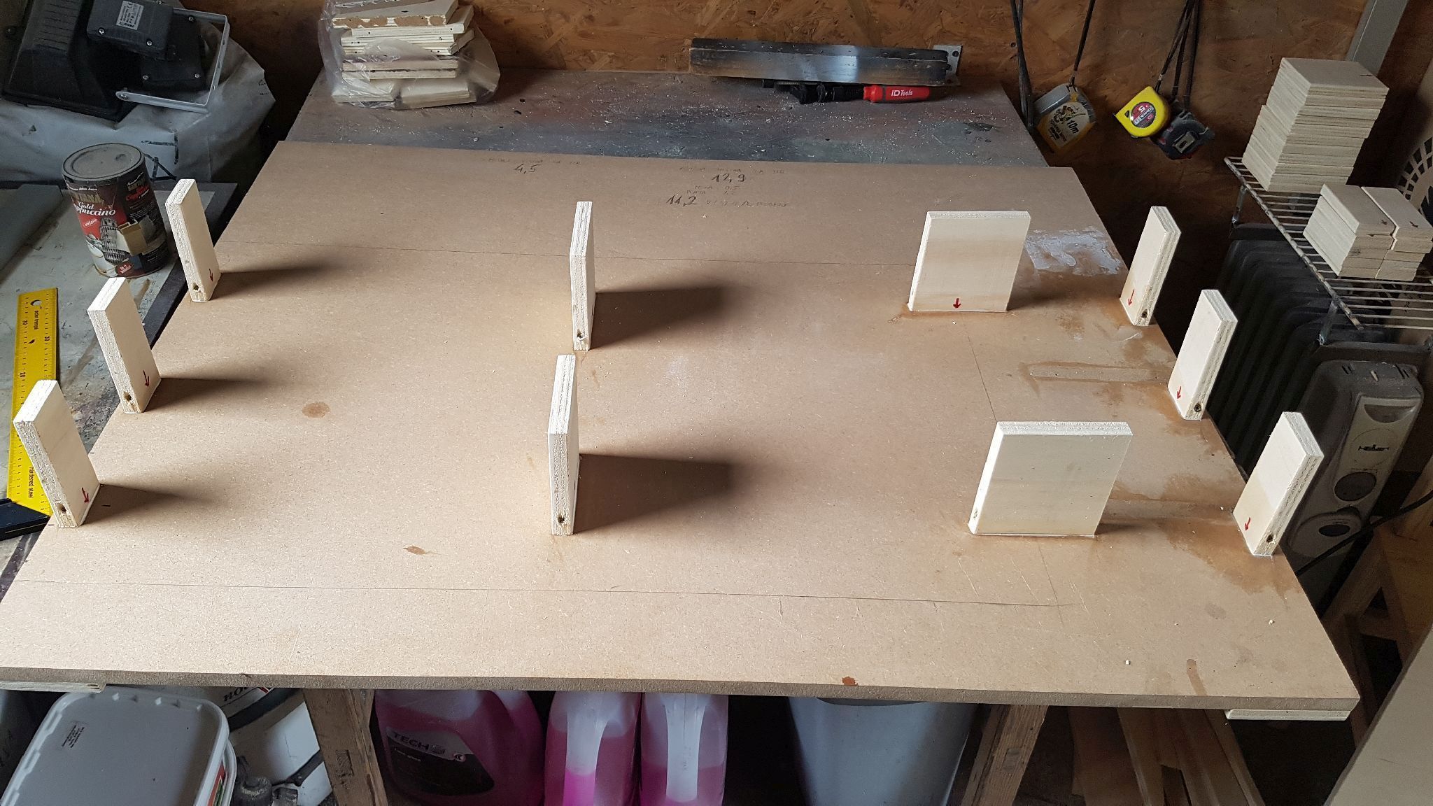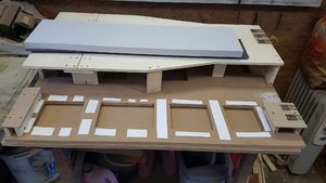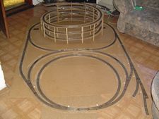 Tu je prikaz sestavljanja okvirjev, kateri se nahajajo na nogah in na teh okvirjih bodo plošče z maketo. Okvirje sem naredil, pobarval in sestavil prvo testno postavitev yarda (postaje)