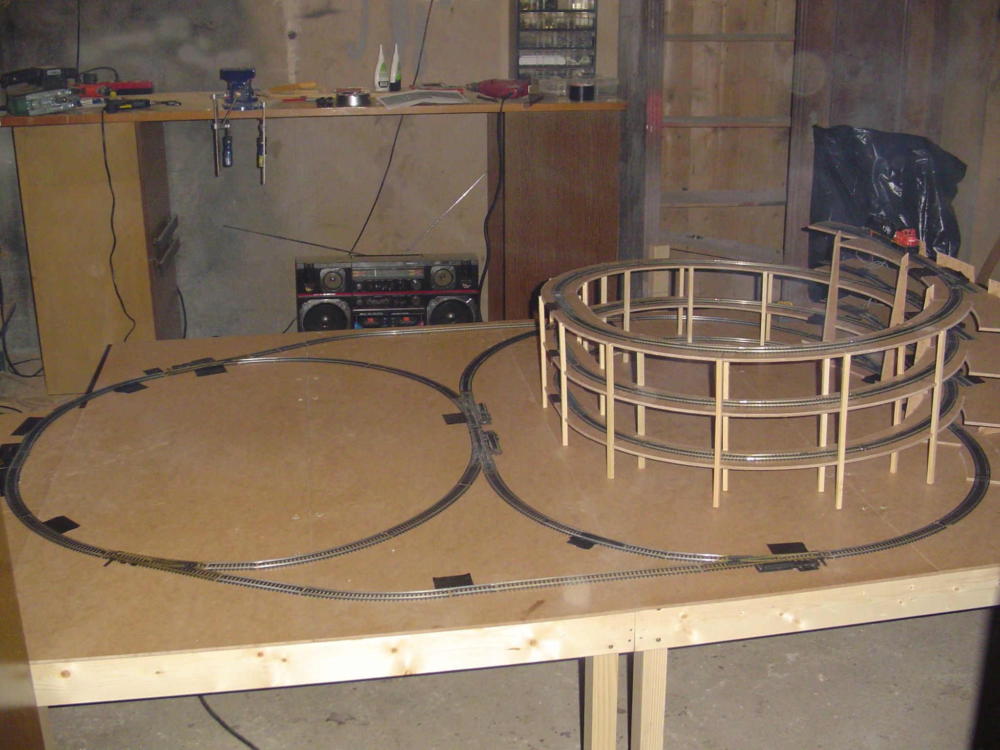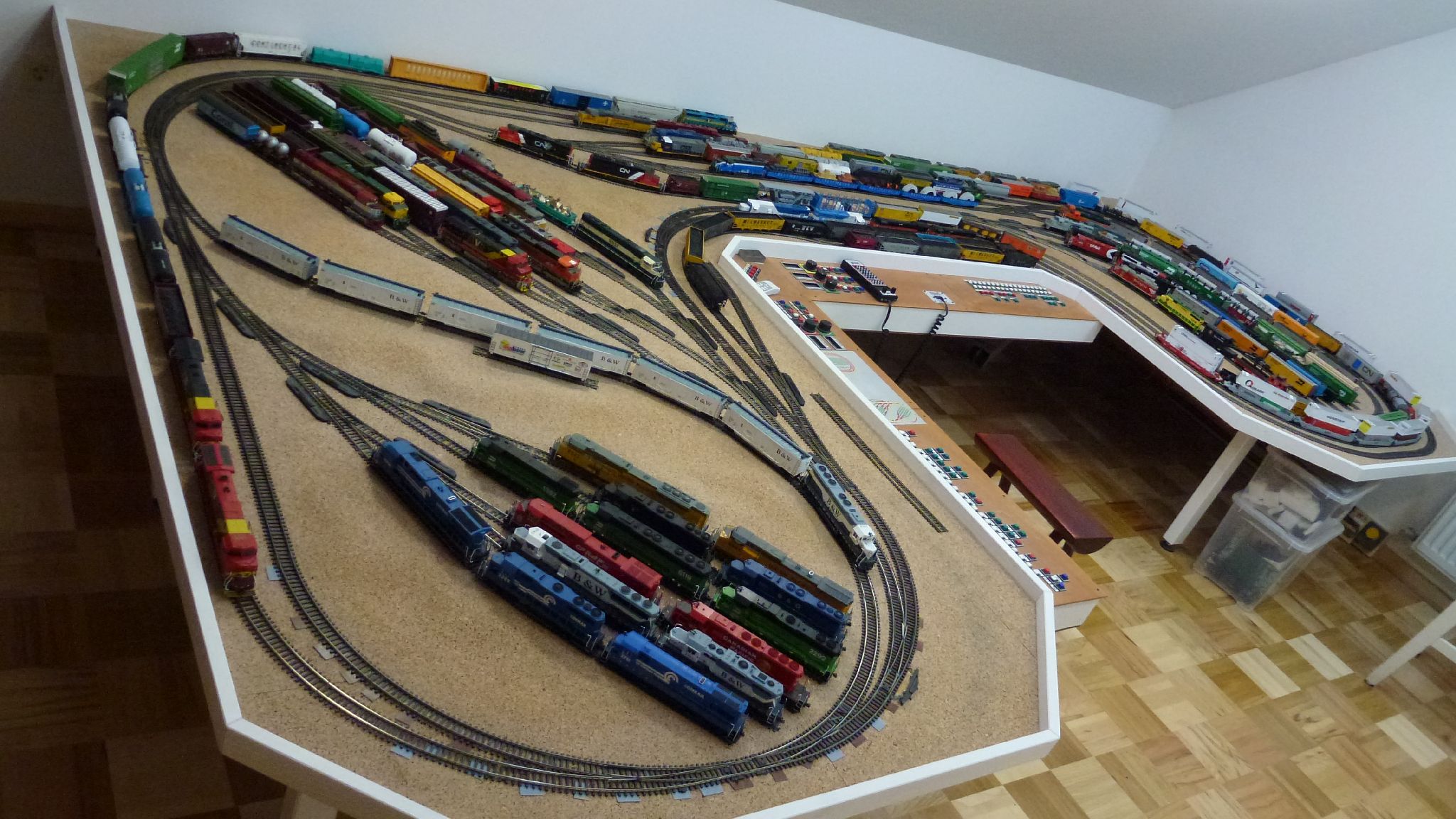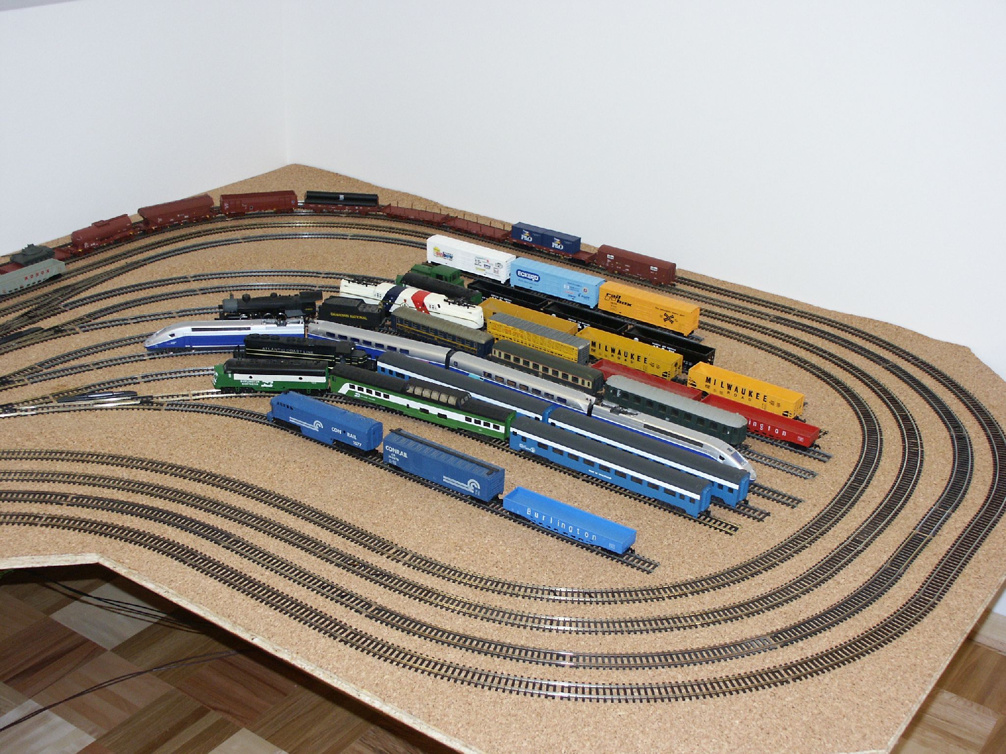 Ko sem v novi hiši uredil sobo kjer bo železnica sem, preden sem začel izdelovati samo maketo, postavil tako mizico na kateri sem postavil tri kroge tolk da sem se malenkos igral. Tu vidite da imam še vedno Ameriške in Evropske vlake. Malo kasneje v letu 2010, sem odprodal vse kar sem imel od Evrope, in se striktno navezal in odločil da bom imel Ameriške tovorne vlake. Dve od teh lokomotiv imam še sedaj v uporabi, vagona pa praktično nobenega.