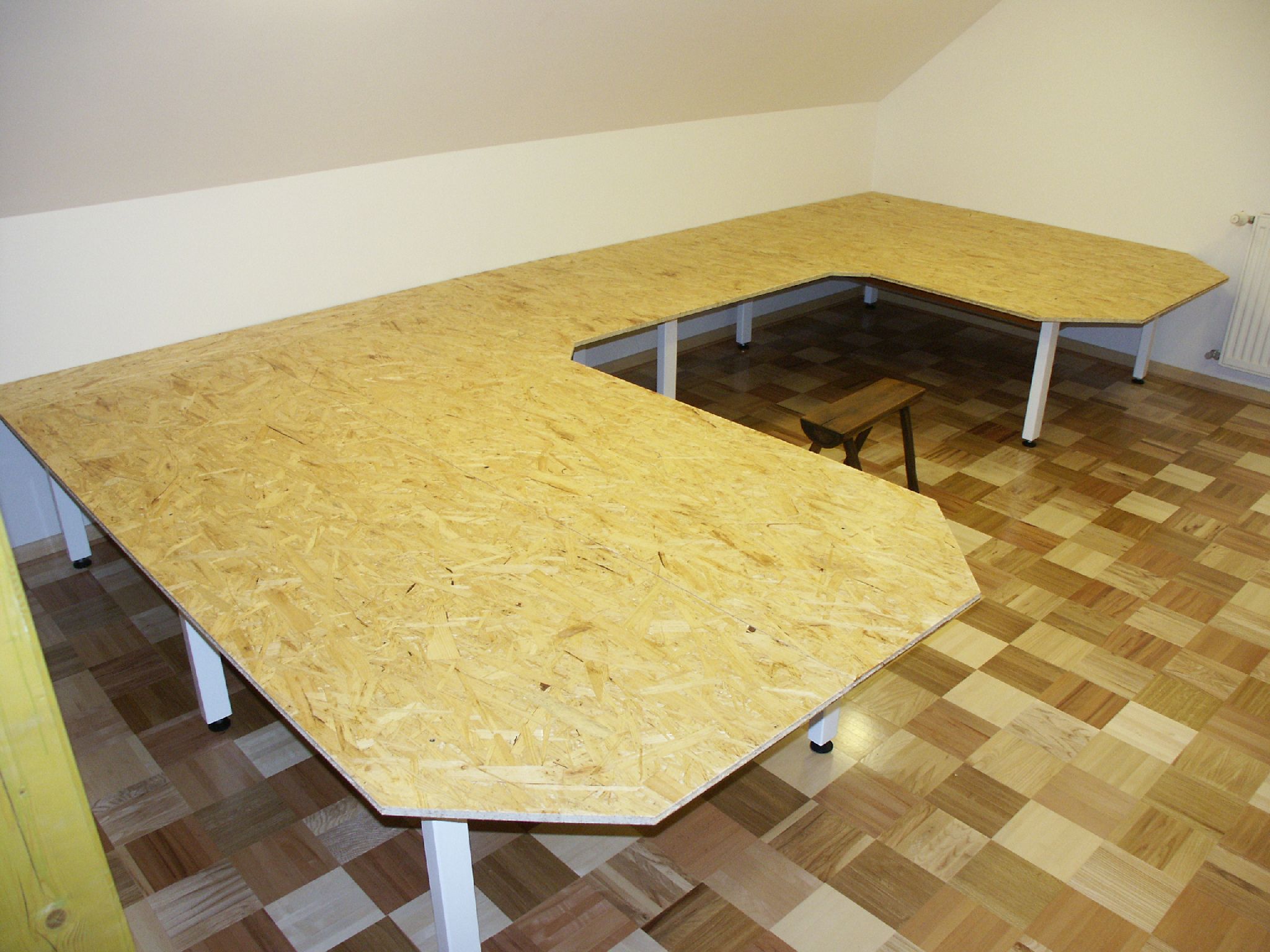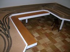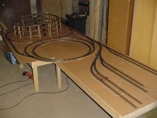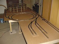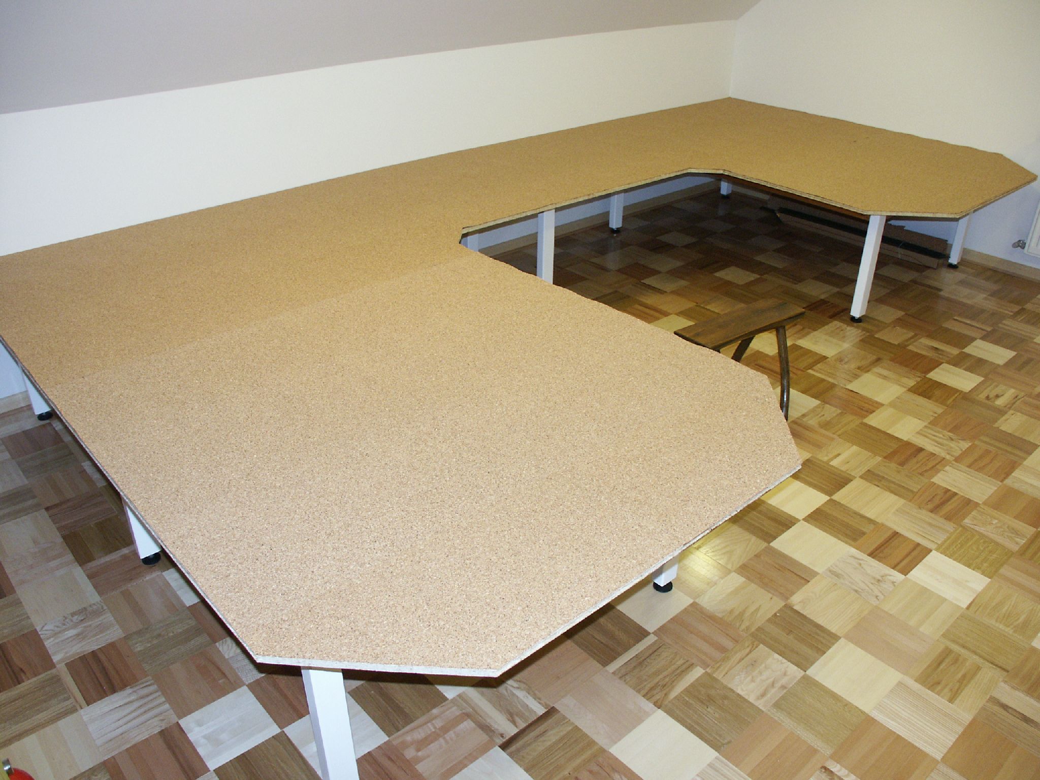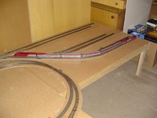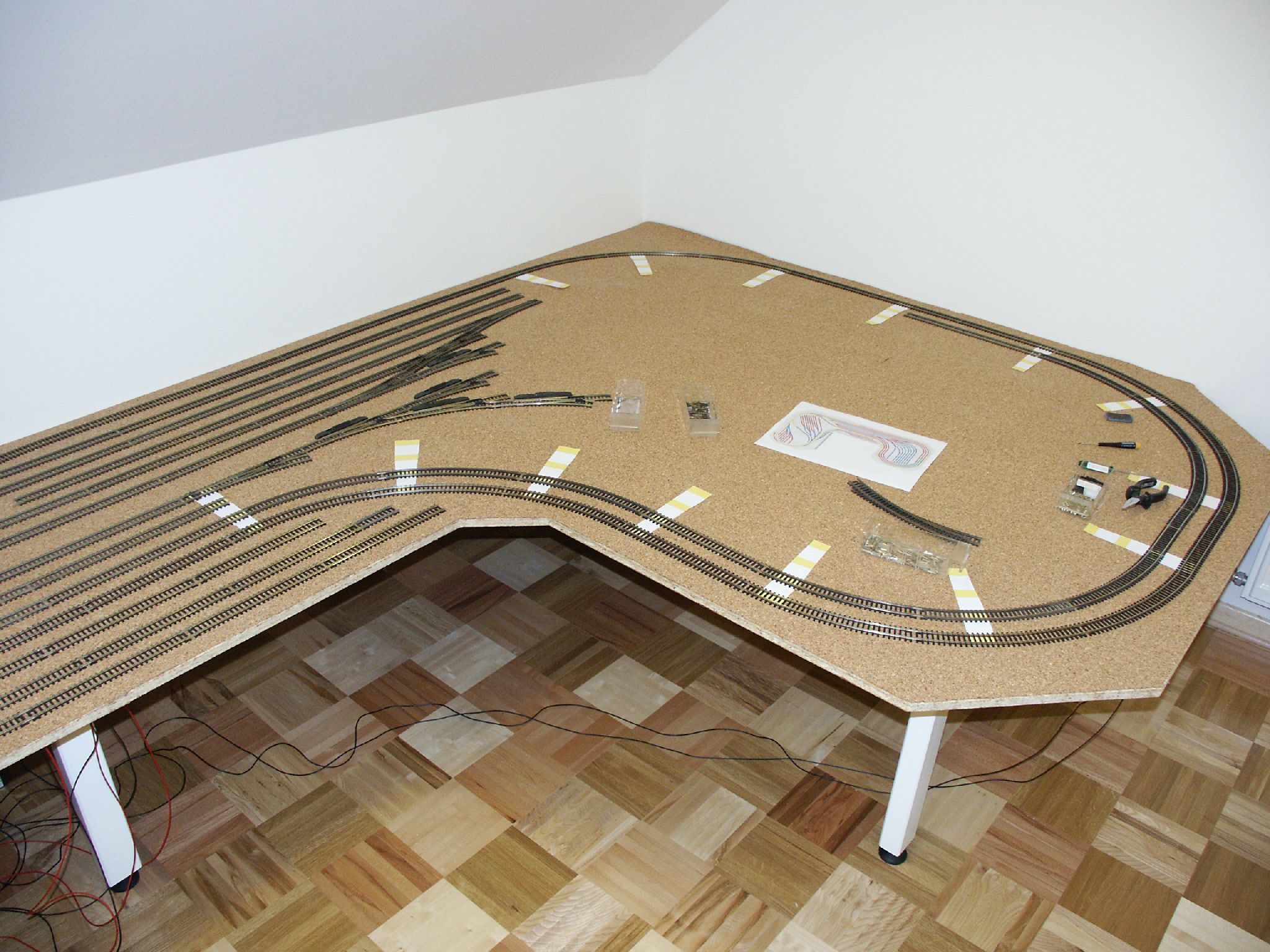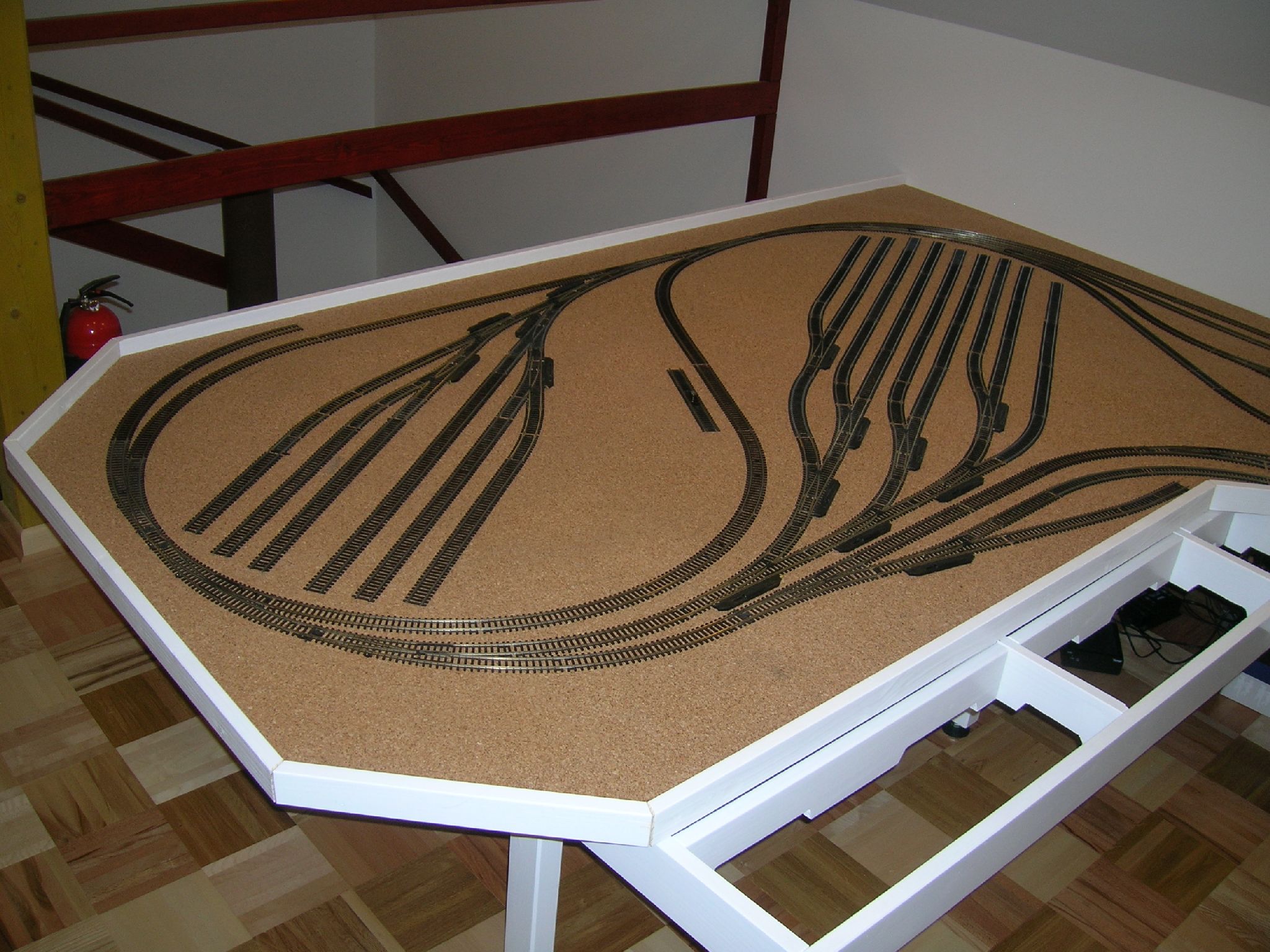 Začetek izdelave moje prve kolikor-toliko prave makete. Zamislil sem si maketo z veeelikoooo tirov in elektronike. Delovalo bo tako analogno kot tudi digitalno krmiljenje vlakov. Prve čtiri slike prikazujejo izdelovanje podporne mize, na peti sliki je na tej mizi že nosilna plošča, na šesti je pa že položena pluta za boljšo izolacijo in mehkejšo vožnjo. Sedma slika prikazuje že začetek polaganja tirov in narejen glavni in osnovni krog s prvo zanko.