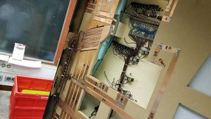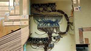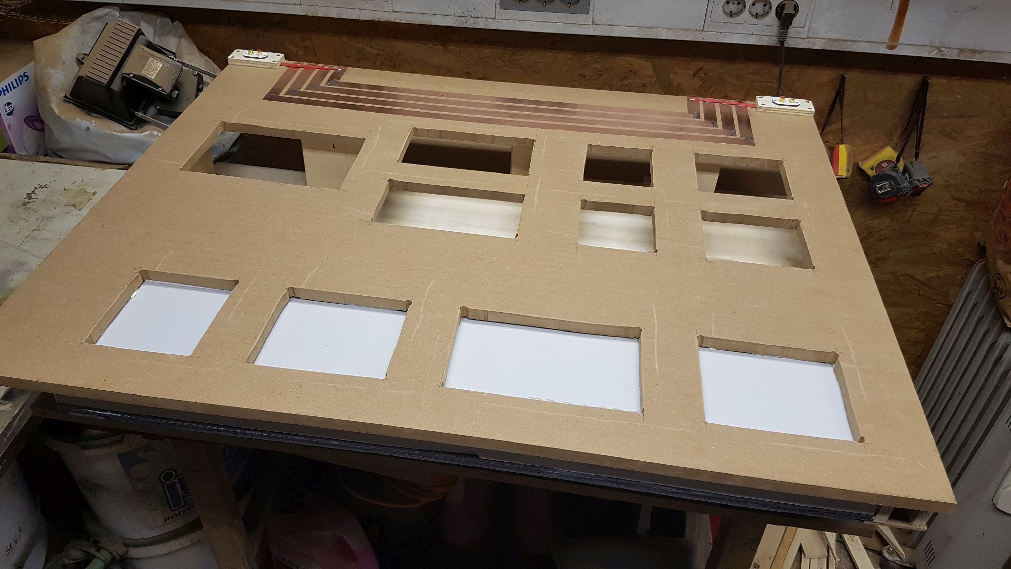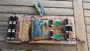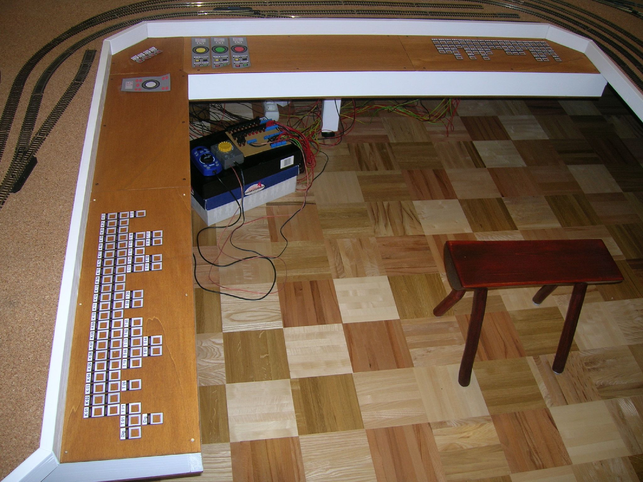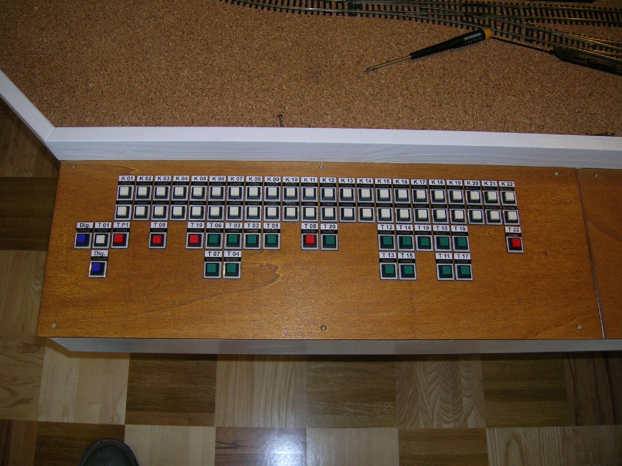 Do neke mere narejena komandna plošča. Povezani so vsi tokokrogi, elektro kretnice pa še niso.