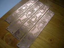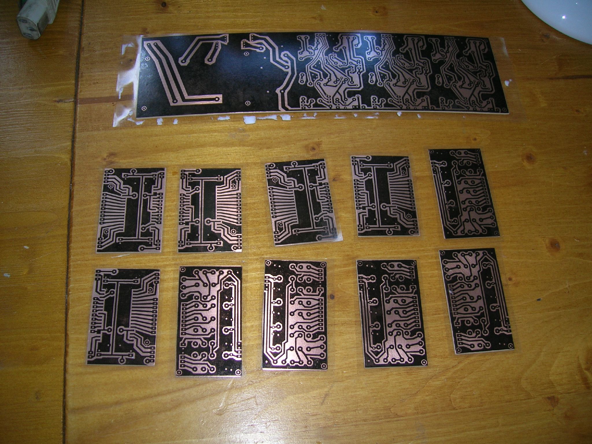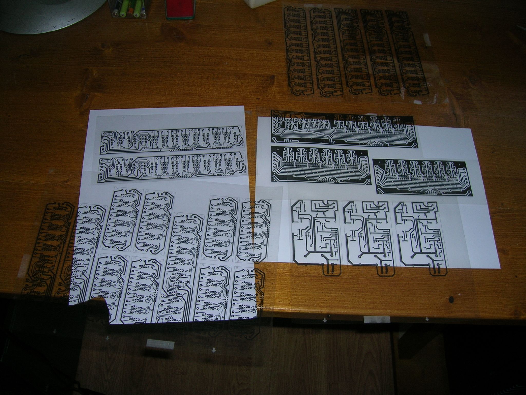 Preden sem začel izdelovati samo komandno ploščo sem vseskupaj natisnil na papir in zložil na plošče komandne plošče da vidim ali vse aše. Postavitev vidite na slikah. Na spodnjih slikah vidite kako sem izdeloval tiskana vezja za elektroniko komandne plošče.