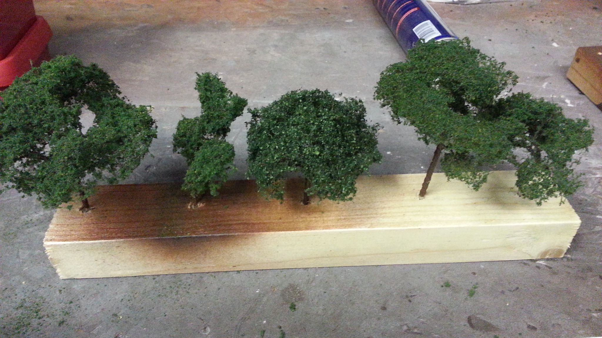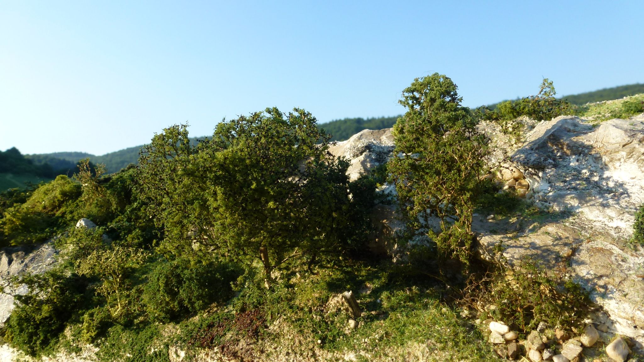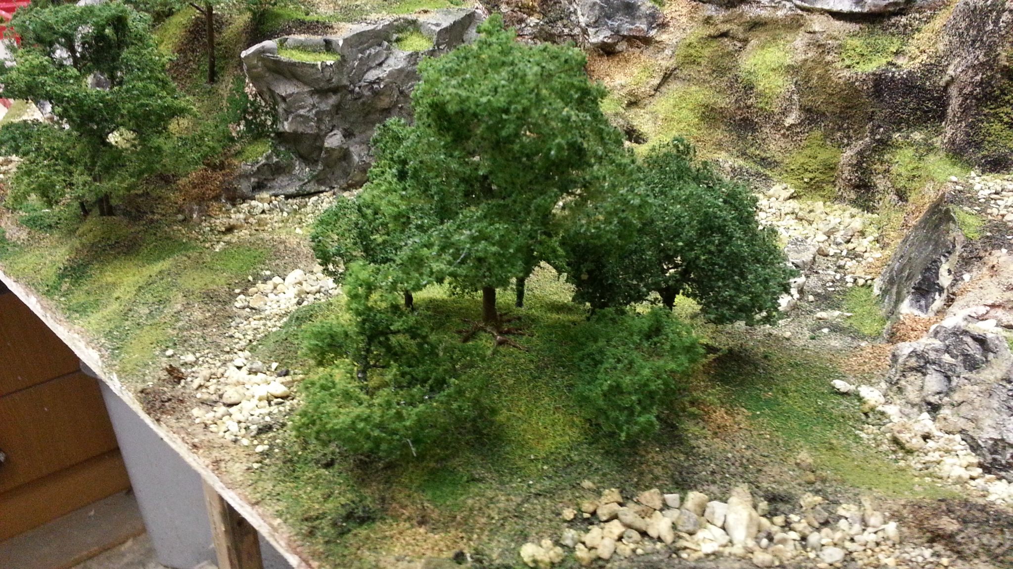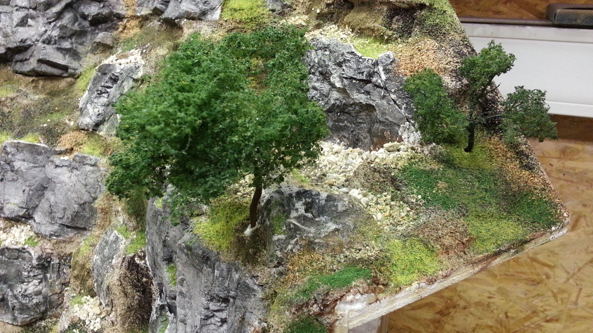 Skoraj končan dodatek k diorami, z drevjem in grmičevjem.