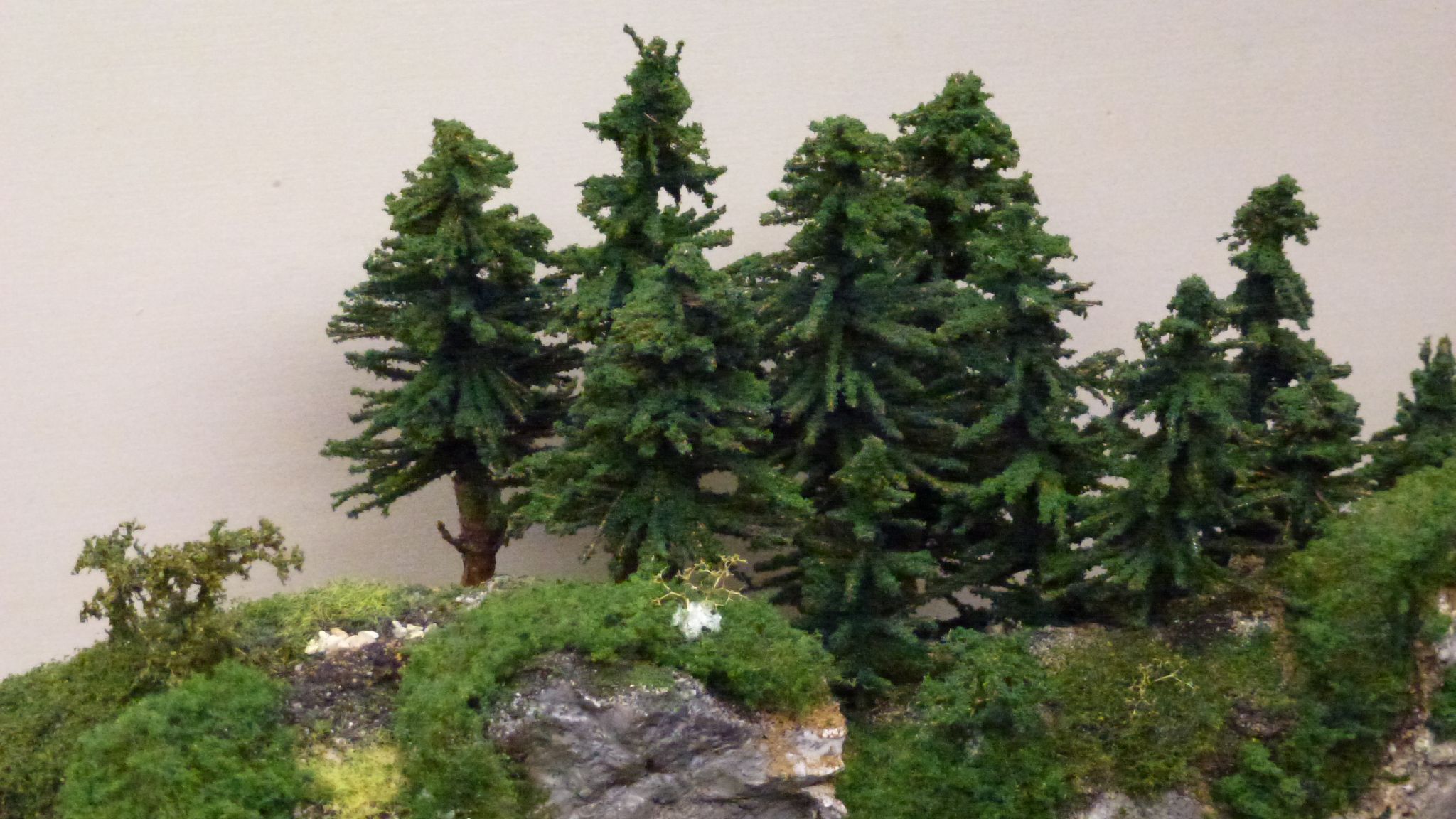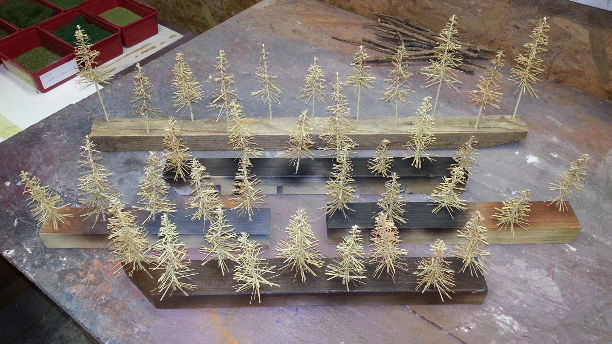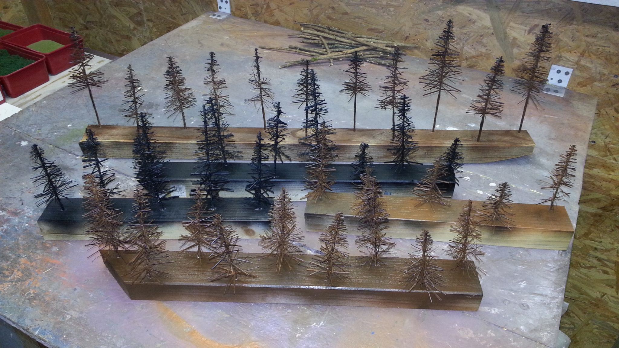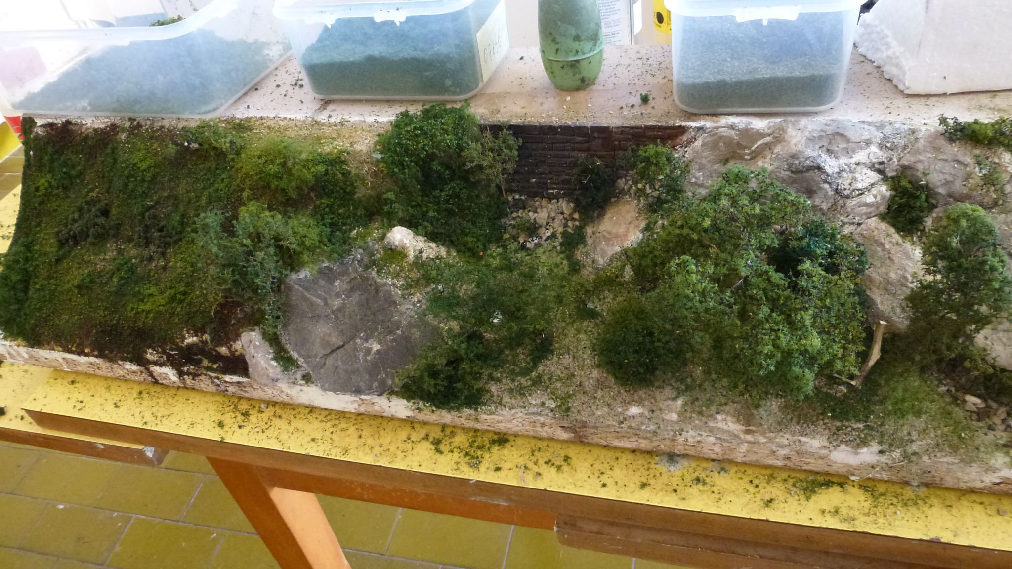 Skoraj končan dodatek k diorami, z drevjem in grmičevjem.