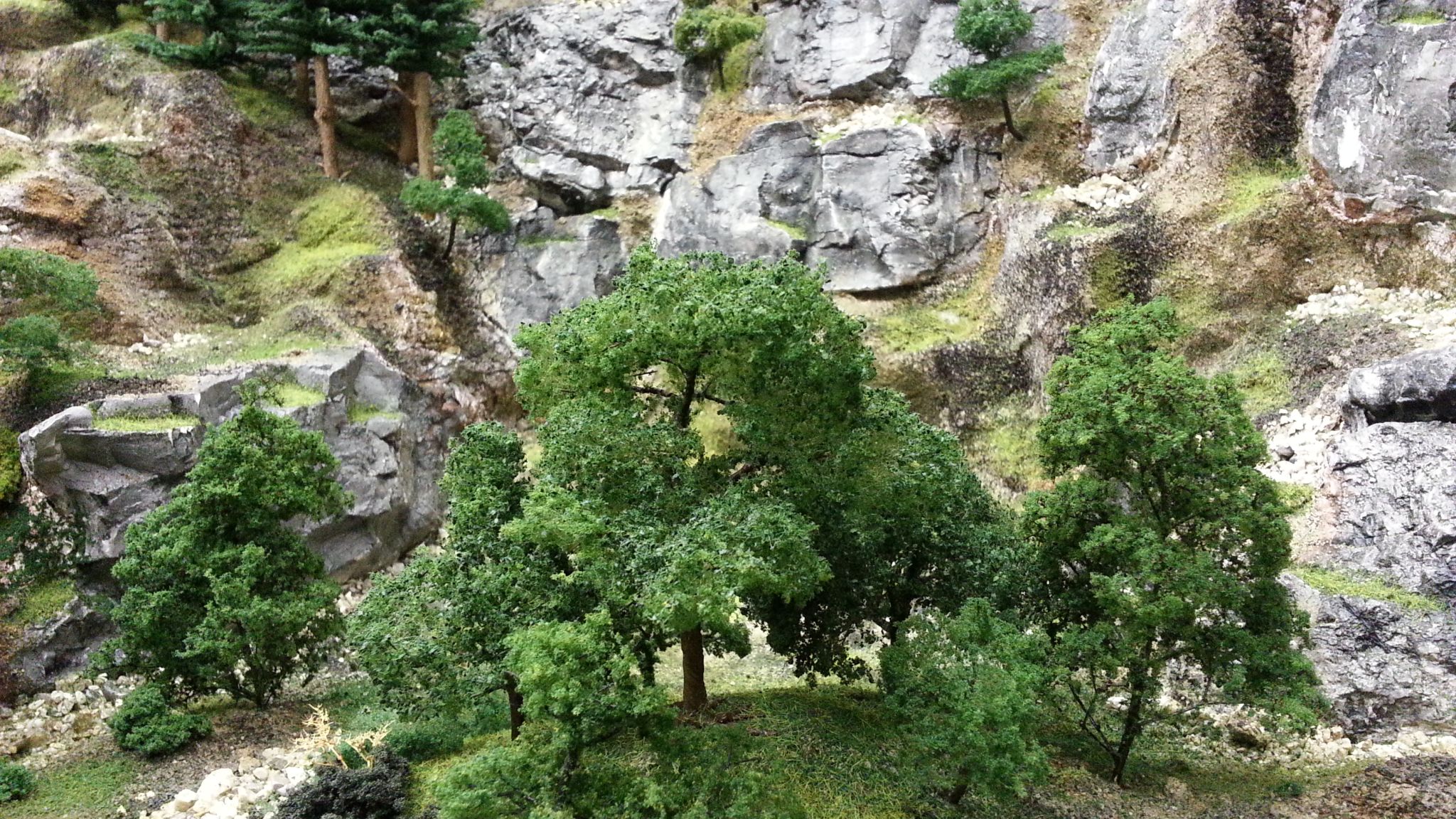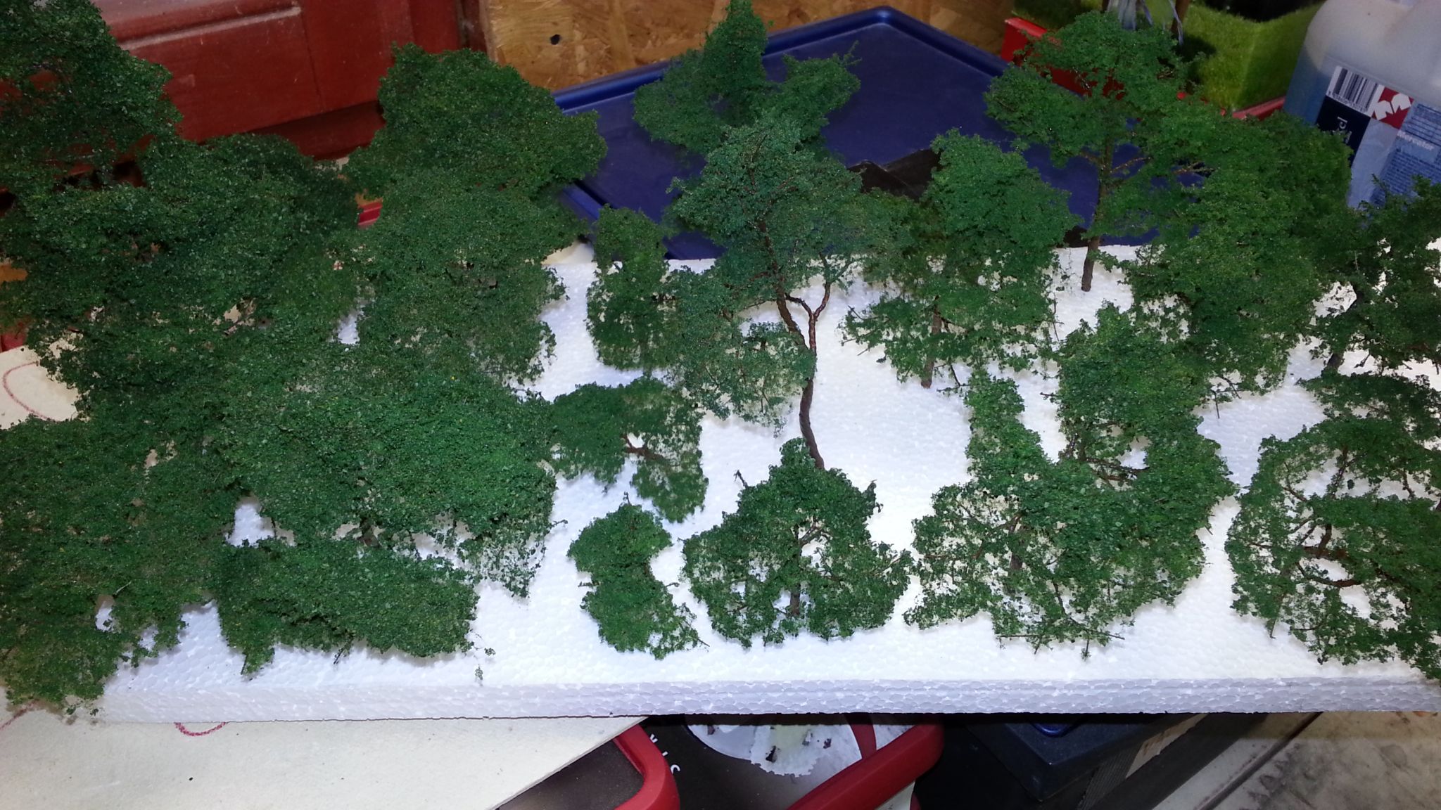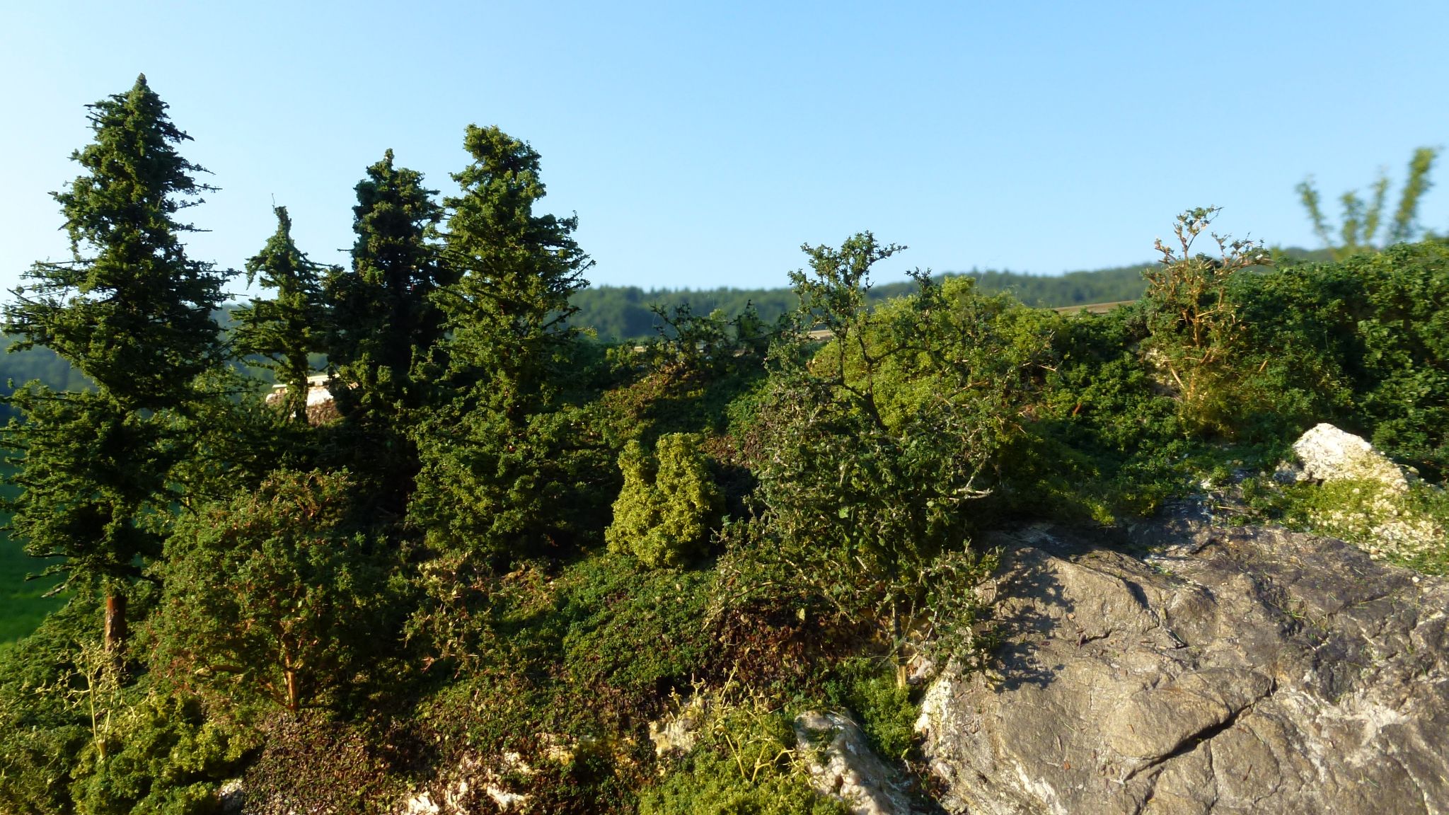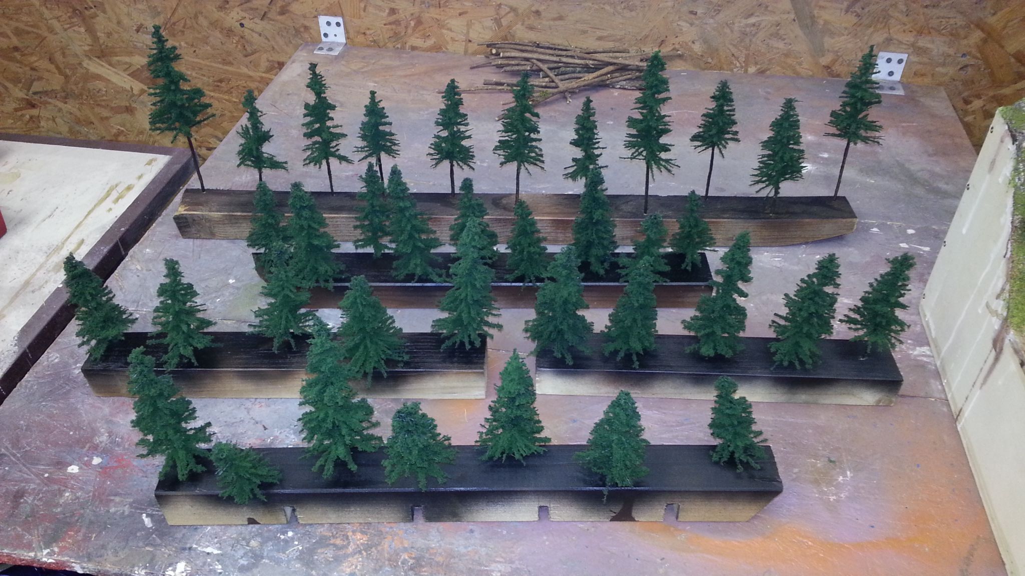 Skoraj končan dodatek k diorami, z drevjem in grmičevjem.