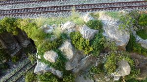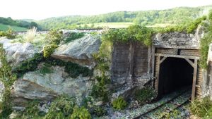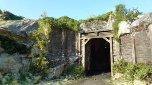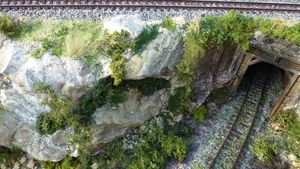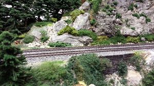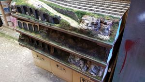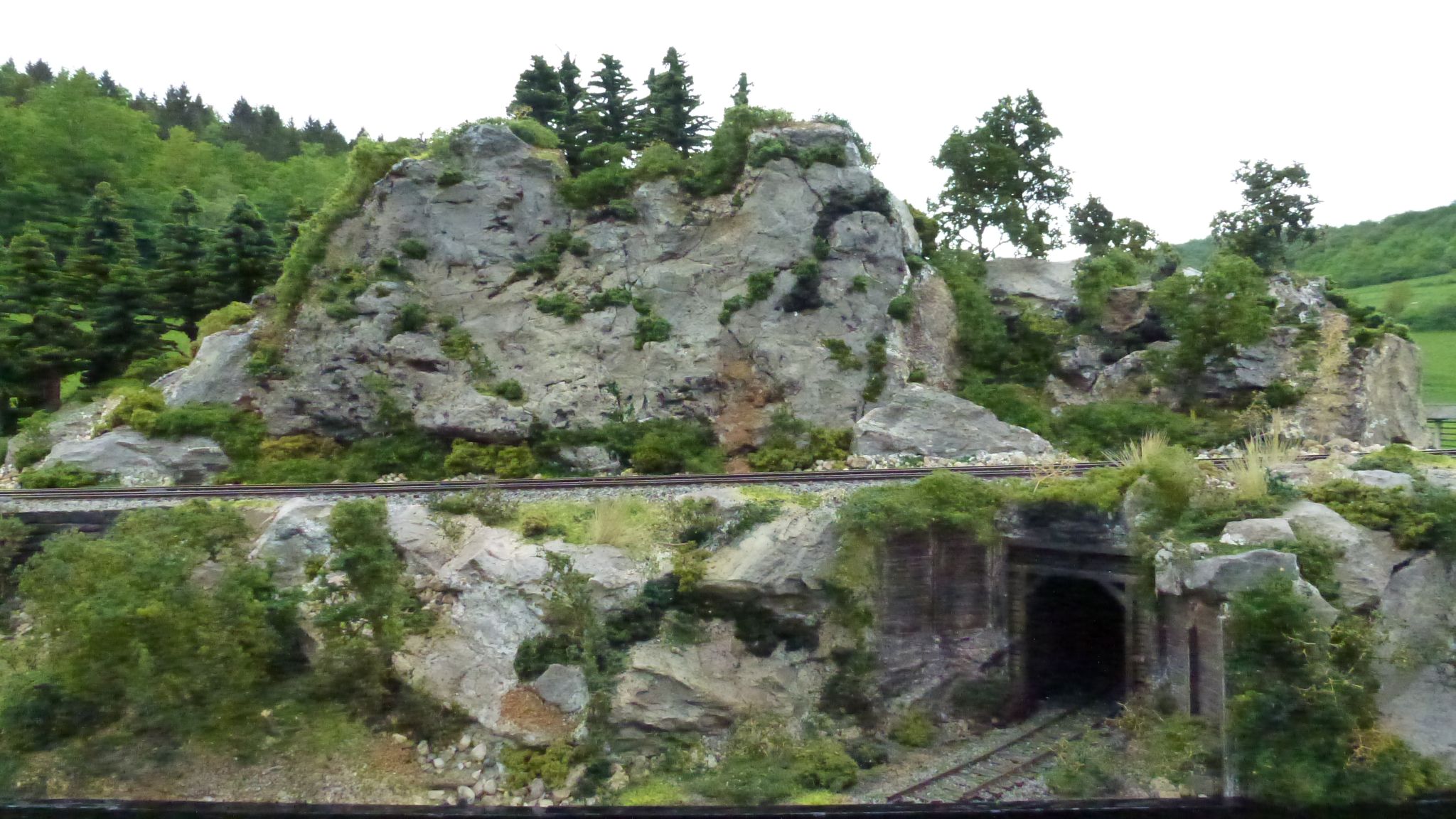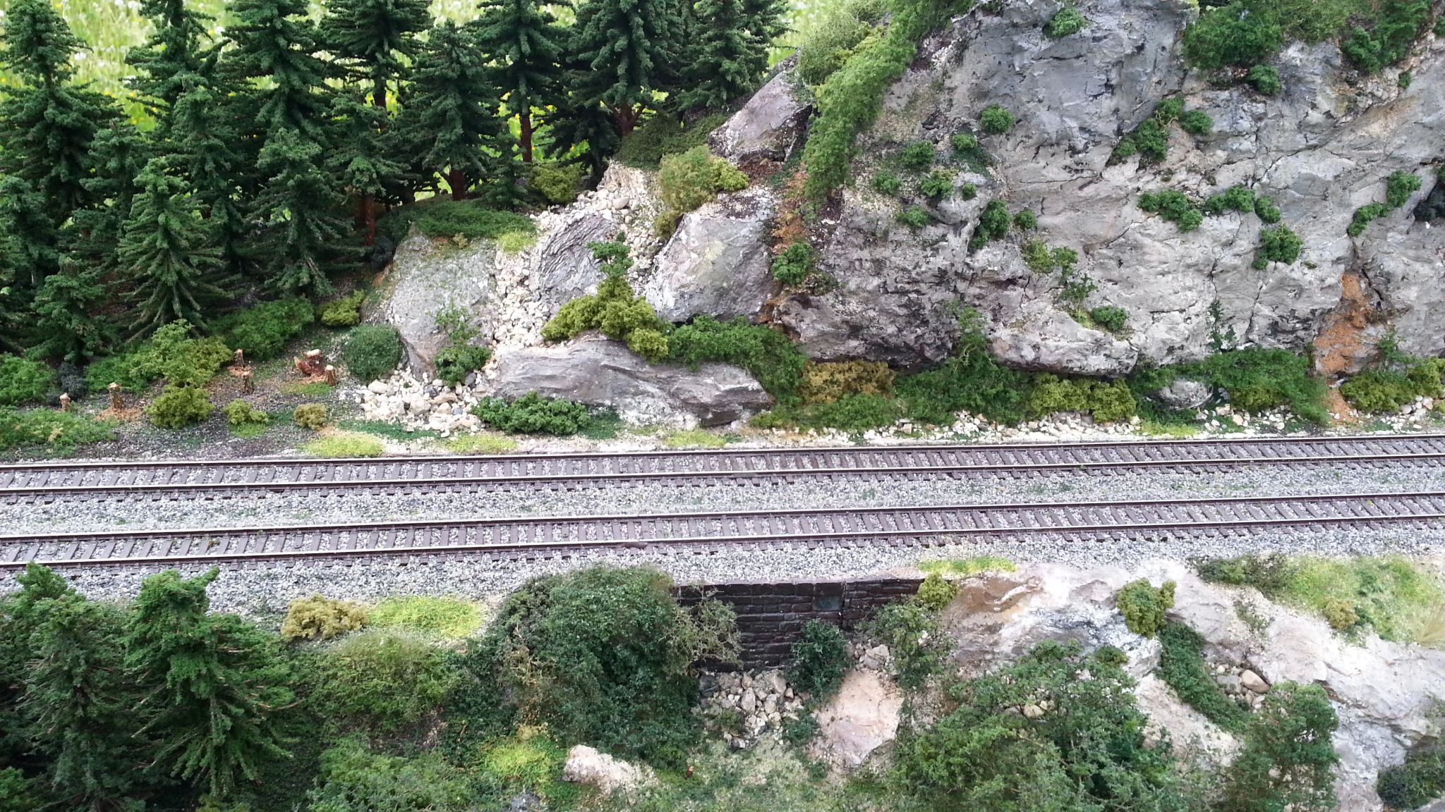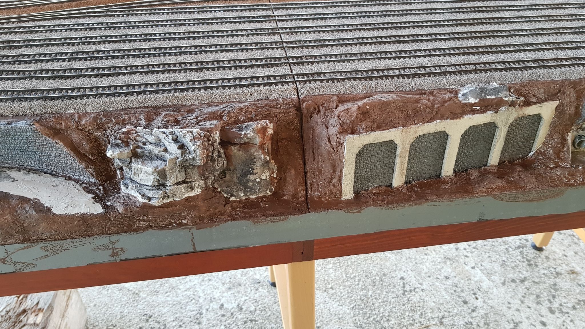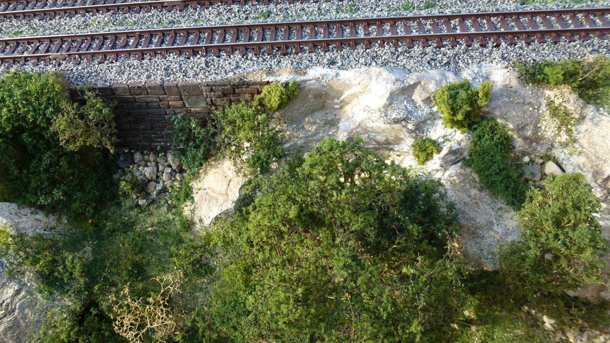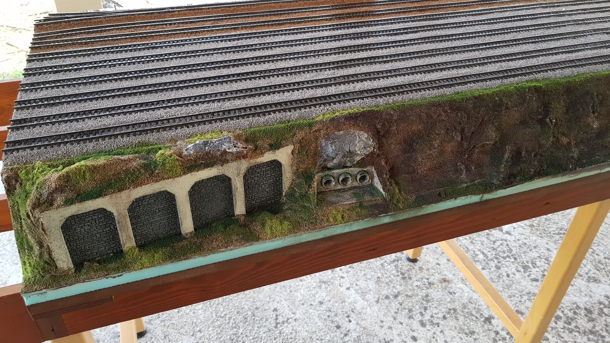 Na dioramo sem vgradil tudi opuščeni tunel, ki poteka pod glavno progo. Tunel je znotraj obložen z skalami katere sem prebarval skoraj na črno barvo, zaradi dima parnih lokomotiv.