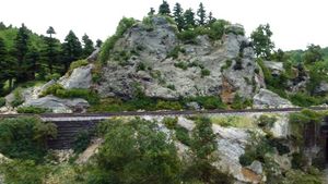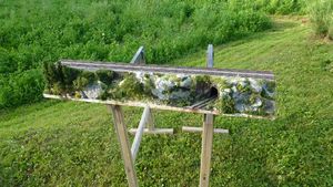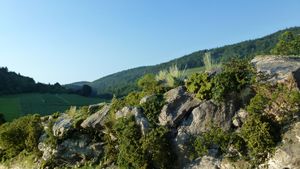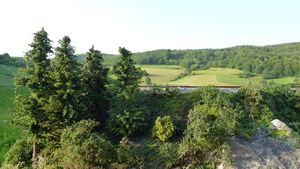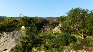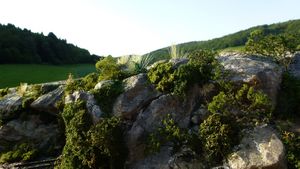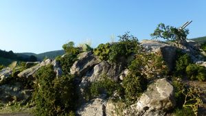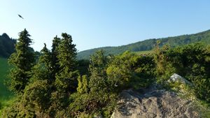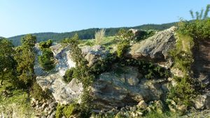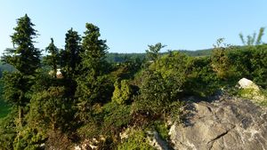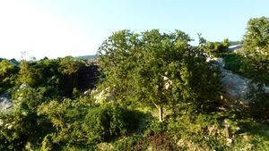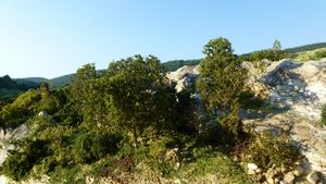 Za drevesi so na vrsti grmički, razne okrasne velike trave, suhe vejice dreves, debla odsekanih dreves......
