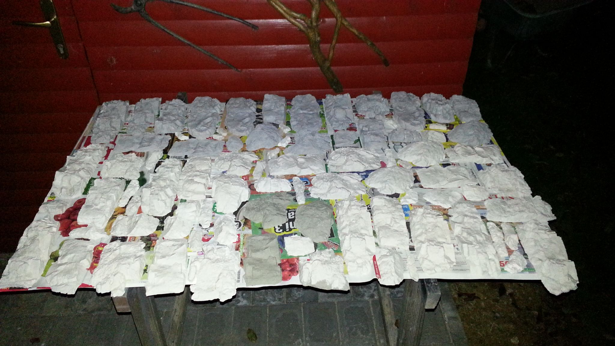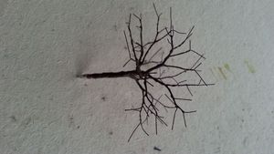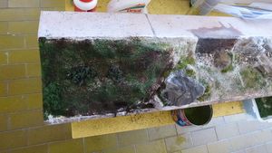Ko sem naredil prvi del sem moral počakati da se mavec posuši v tem časi sem pa očistil skale z ščetko. Mešanica alkohola in črnila za nalivke je perfektna barva za temnenje skal in se jo z malim čopičem nanaša na skale. Zaradi viskoznosti alkohola ta prodre v vse pore skal in jih bolje poudari. Nadaljevanje je polaganje peska, kot podlage, čez to gre zemlja, trava in nadaljujemo z izdelavo smrekic, dreves in grmičkov.