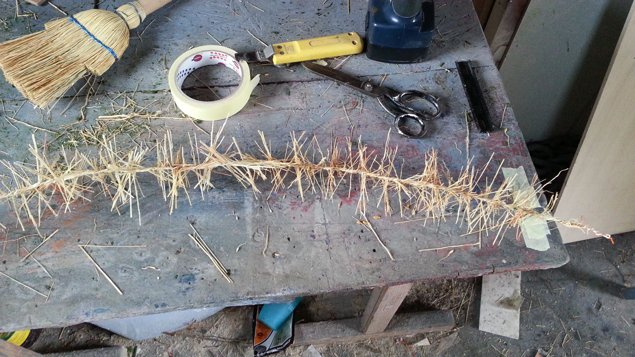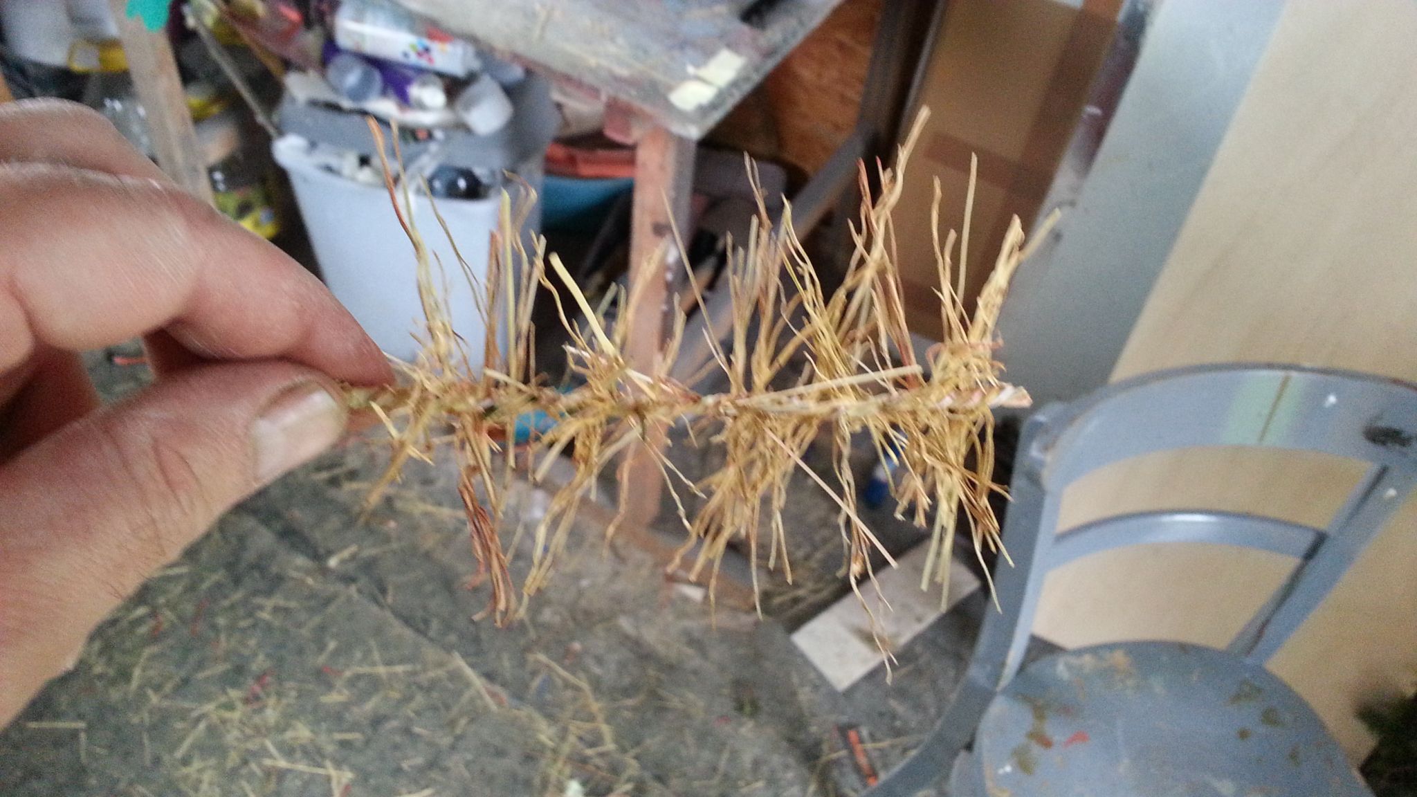 Izdelavo smrekic mi je pokazal prijatelj Erik in je zelo enostavna. Poglejte si slike. Žica pod katero je samolepilni ličarski papirnati trak ima nalepljeno na sebi 10cm dolge koščke slamnate (sirkove) metle, oziroma krtače. Čez to damo drugo žico, vtaknemo v baterijski vijačnik in počasi navijamo. Bolj kot je navito lepše bodo smreke izgledale. Odrežemo na željeno višino. Z škarjami oblikujemo smreko. Zatem pobarvamo z rjavim oziroma črnim sprejem, poškropimo z lakom za lase in posujemo posip. Še enkrat ponovimo postopek lak za lase in posip. Na koncu še finalno malo laka čez vse in to je to. Smrekca je tu. :) Uporabljajte čimveč odtenkov posipov, tako bo gozd izgledal bolj barvito in naravno.