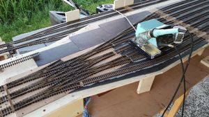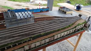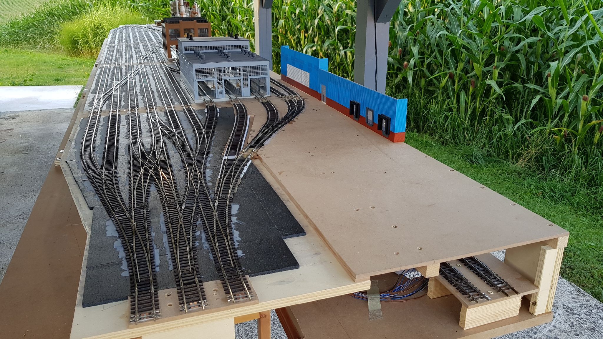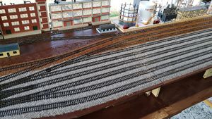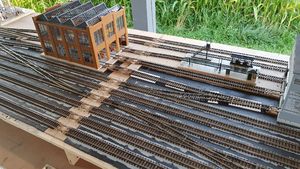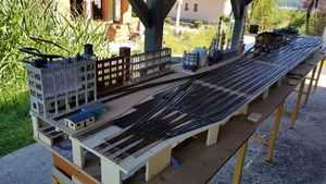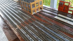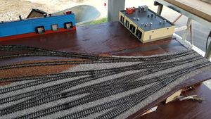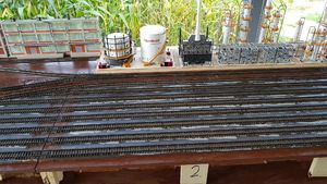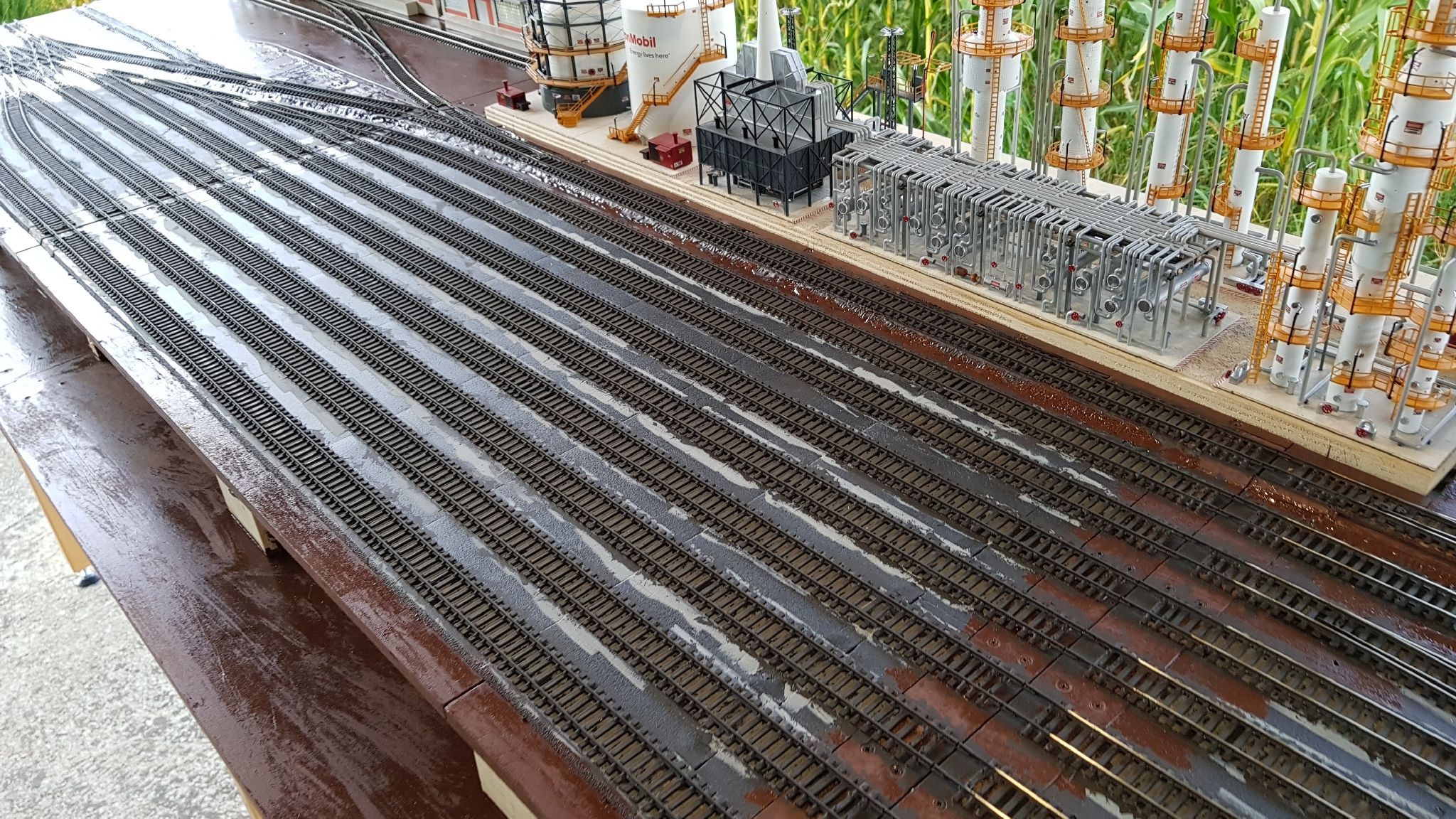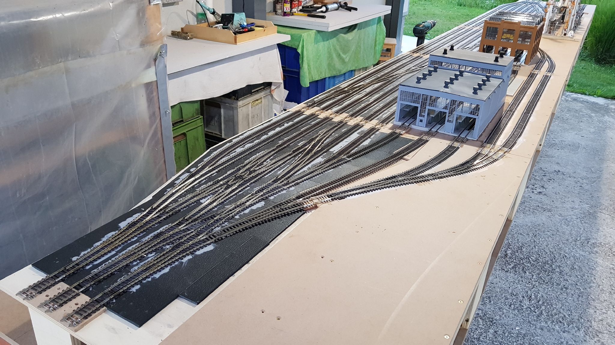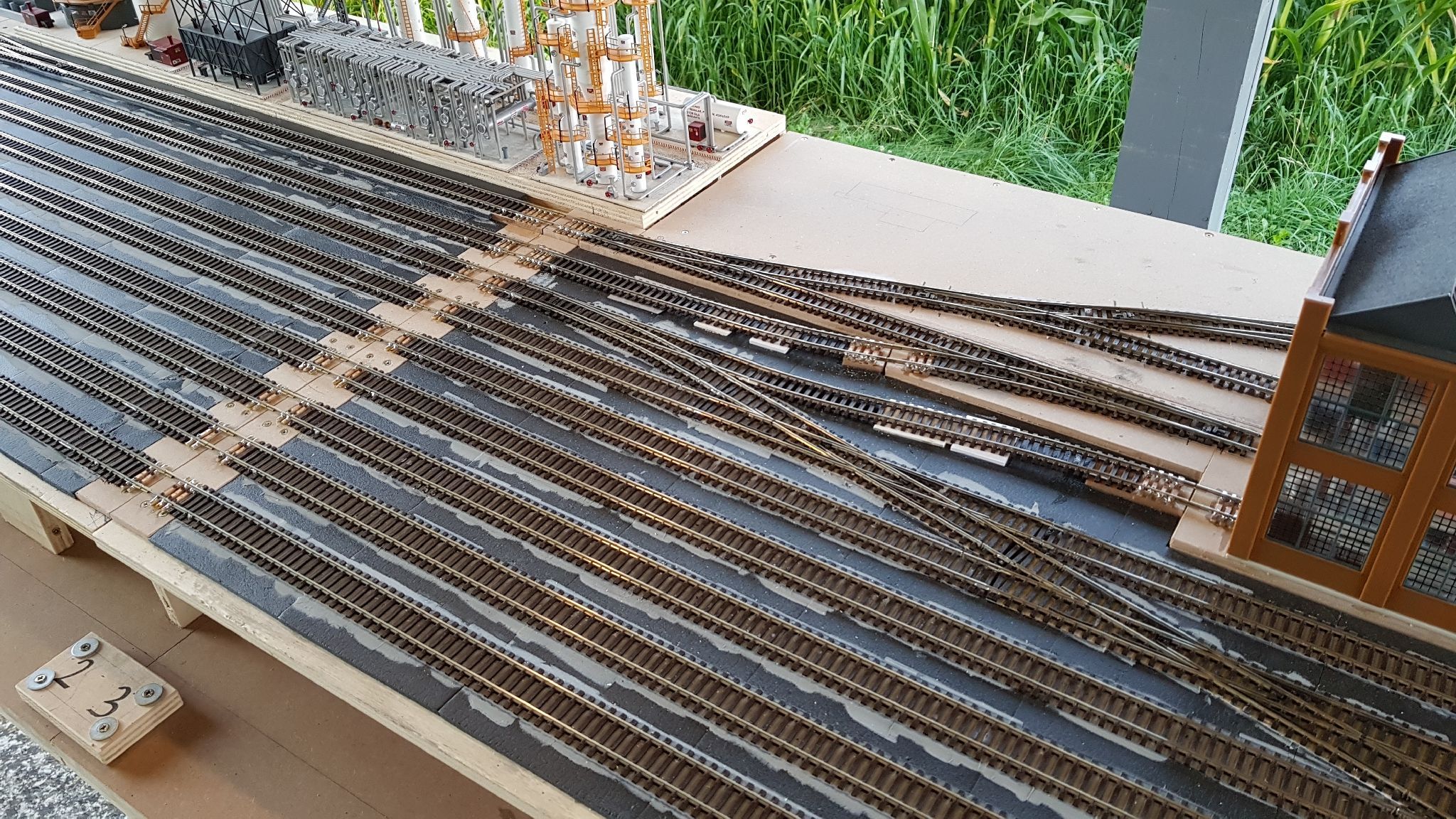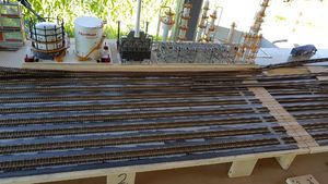 Nadaljevanje in končanje polaganja vseh glavnih tirov na yardu. Sledijo stranski tiri okoli garaž in objektov na manjših modulih.