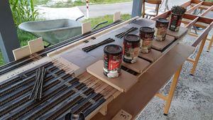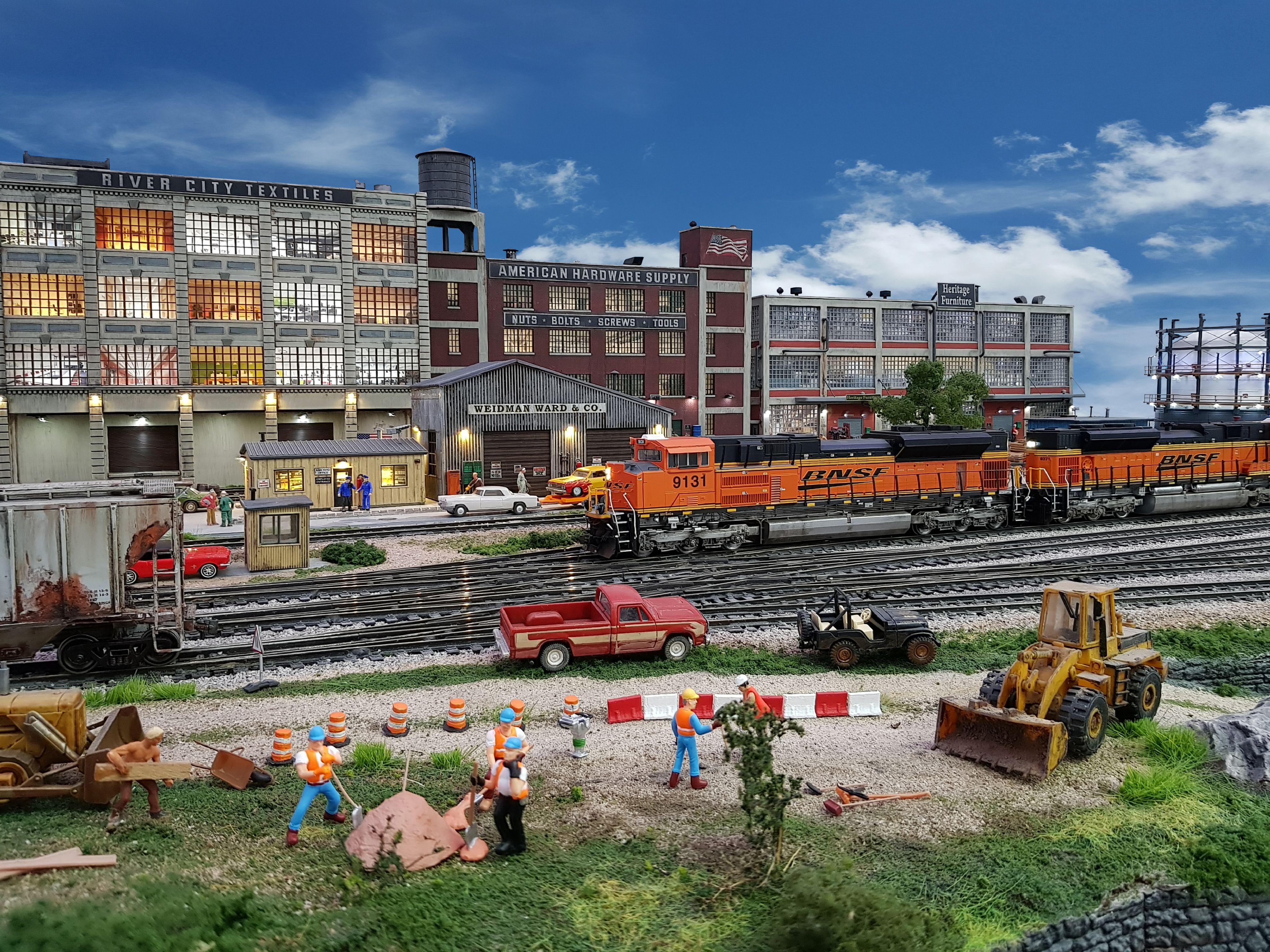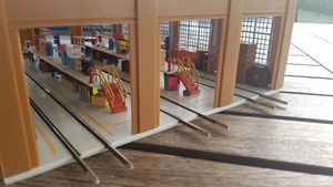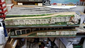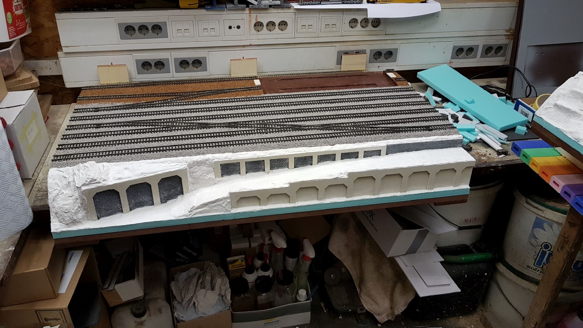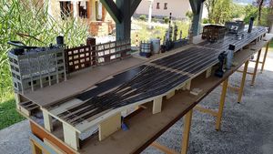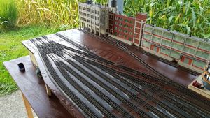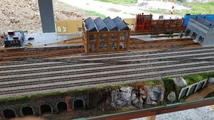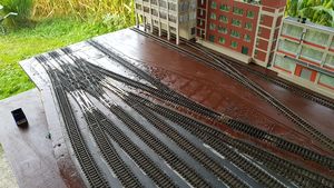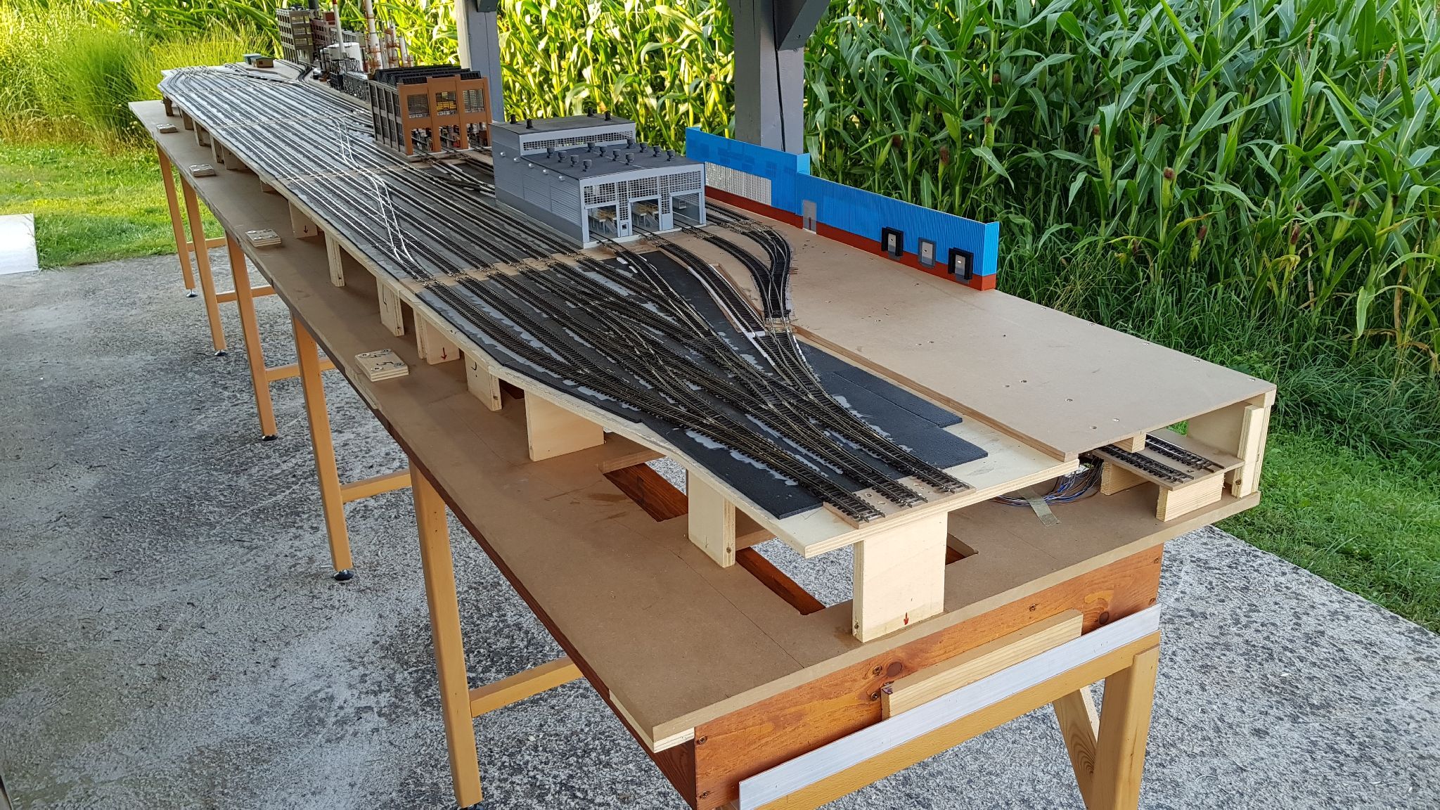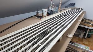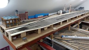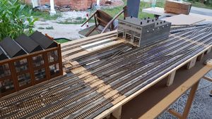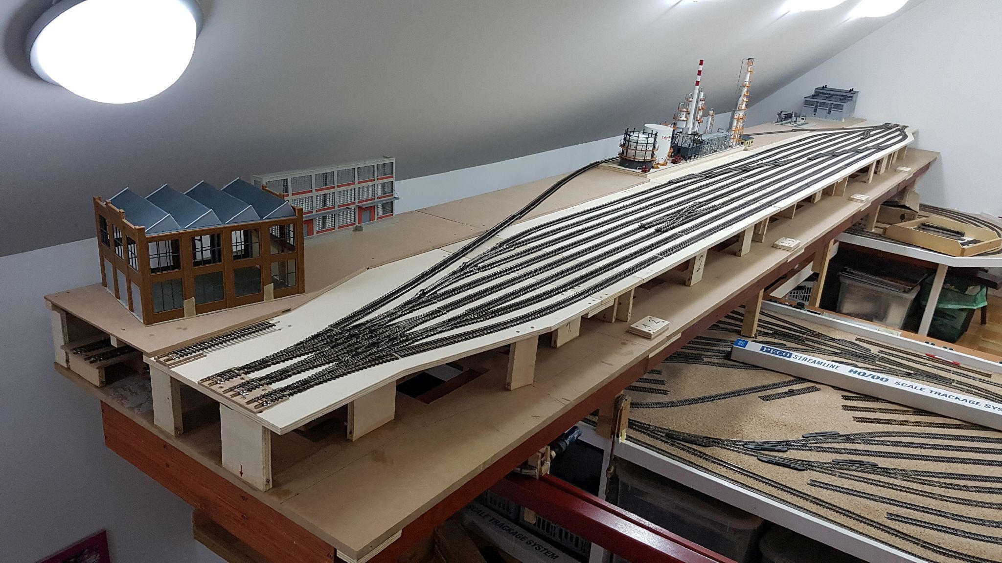Nadaljevanje in končanje polaganja vseh glavnih tirov na yardu. Sledijo stranski tiri okoli garaž in objektov na manjših modulih.