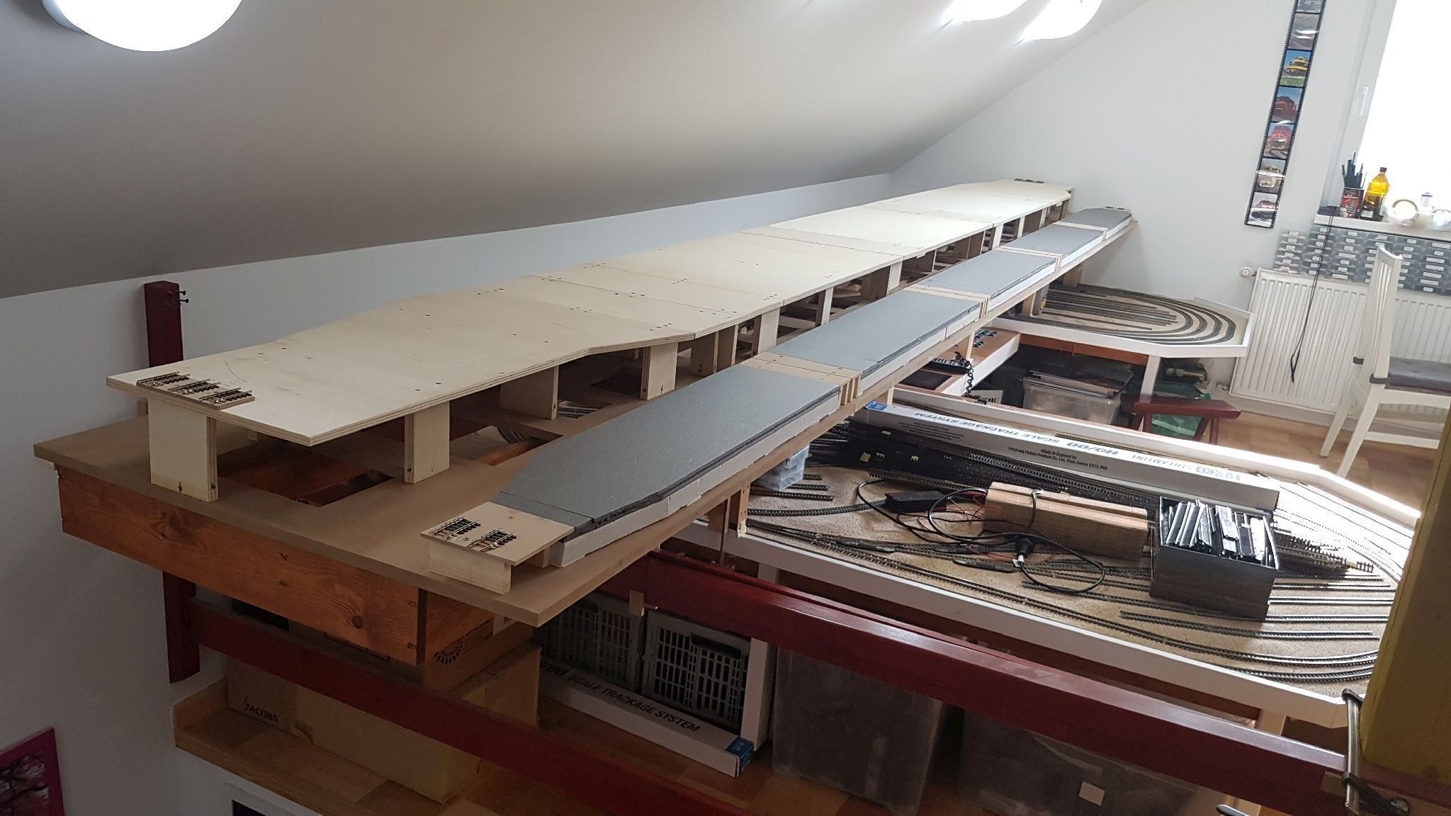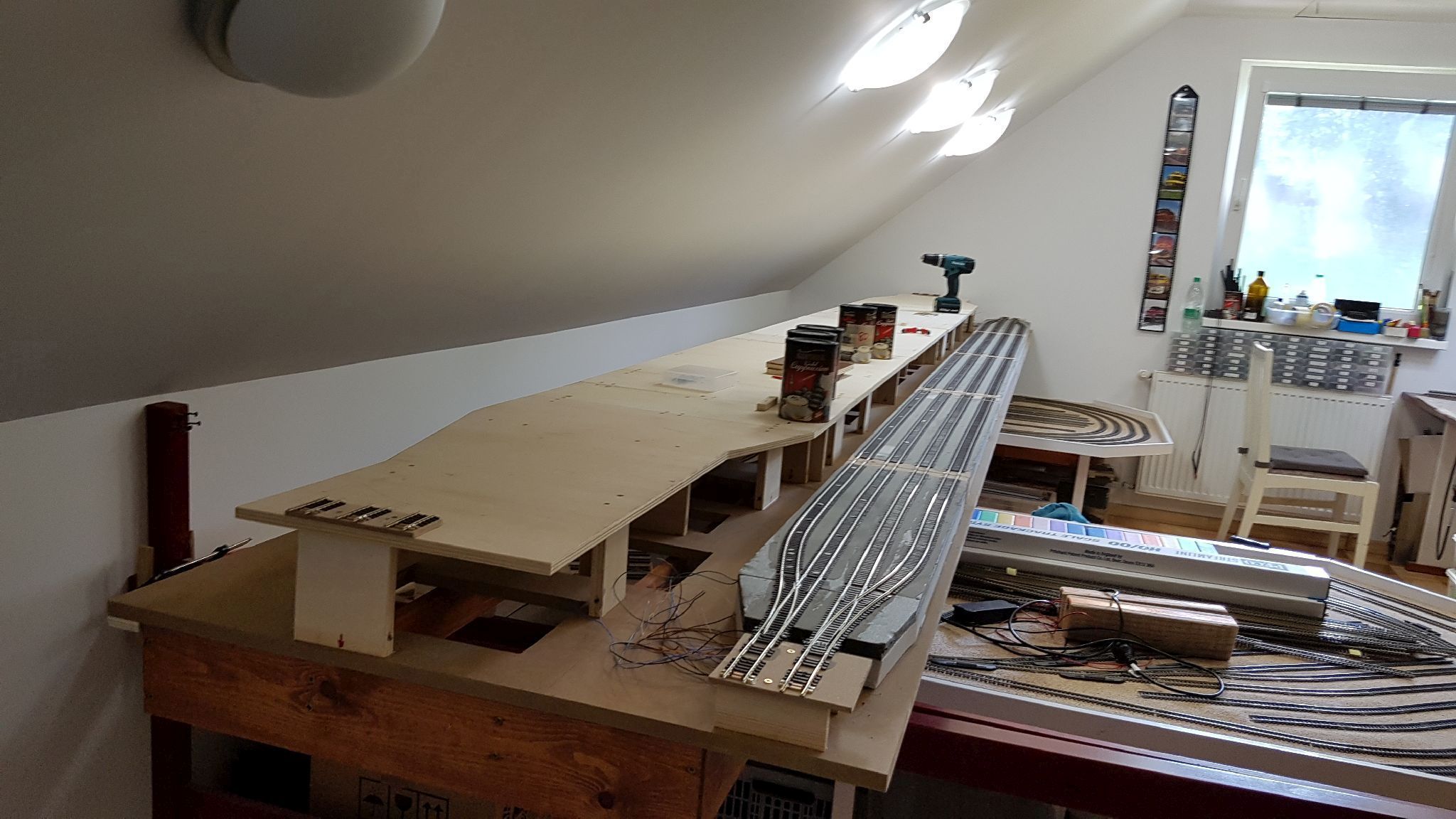 Nadaljevanje polaganje tirov, izdelovanje postaj, štirojne zanke, še več postaj in tudi programskega tira. Sproti sem vse tire povezoval tudi na elektriko, in vsak odstavni tir bo narejen kot svoj tokoktrog.