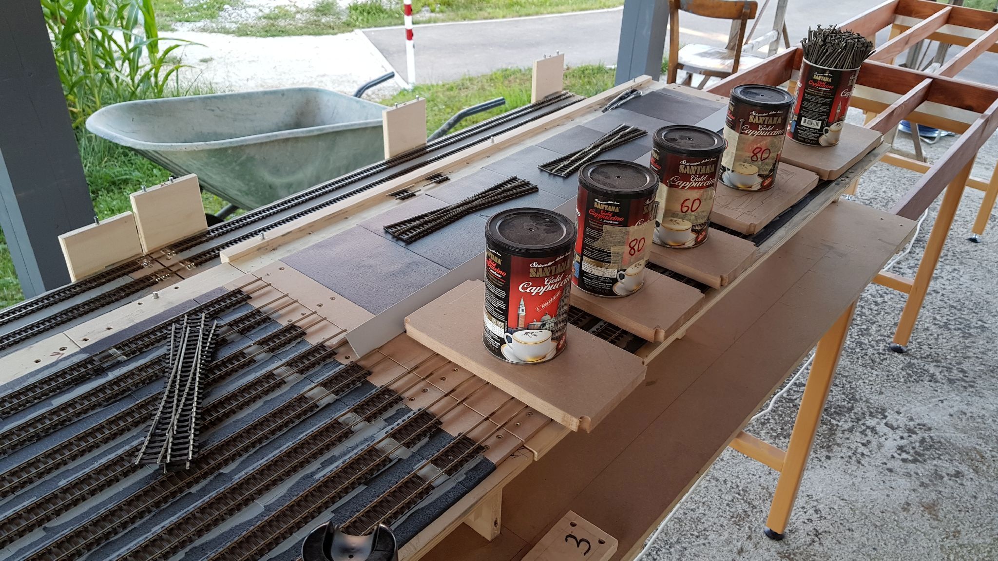 Izdelava dvignjenega dela yarda je prijkazana na teh slikah, kot tudi nekaj nove robe (kretnice), in tudi nova testna postavitev same postaje.