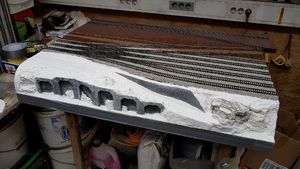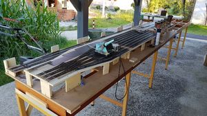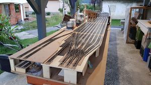 Začetek izdelave nove makete. Prvi del makete bo 5 metrska ranžirna postaja, katero bova z prijateljem Erikom umestila v njegovo domačo maketo, tako da bo nekje na sredini njegove makete. Namen izdelave te velike, integrirane makete je razstava v Nemčiji v mestevu Rodgau blizu Frankfurta. Tam se vsake dve leti zgodi največja razstava Ameriških maket v Evropi. Z Erikom sva kot prva Slovenca bila povabljena k sodelovanju in povabilu sva se odzvala. Torej gremo veselo na delo :)