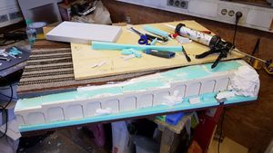 Izdelava scene pred yardom. Da ne bi bila dolgočasna sem naredil na tem delu malo makedamskih cest, veliko škarp, celo del gozda bo na tem delu. Klasična izdelaa z stiroporjem in mavčnimi povoji. Nekaj škarp je kupljenih nekaj pa doma narejenih